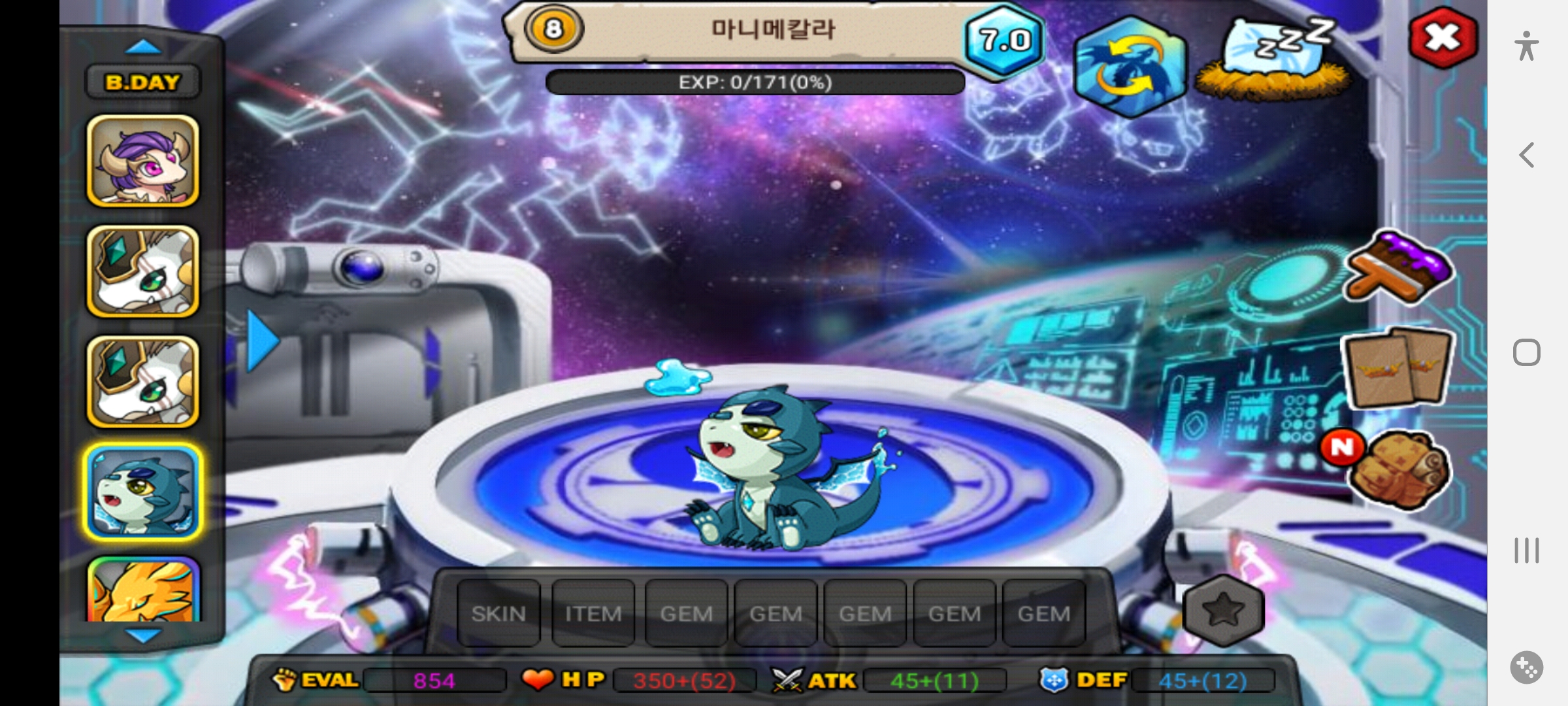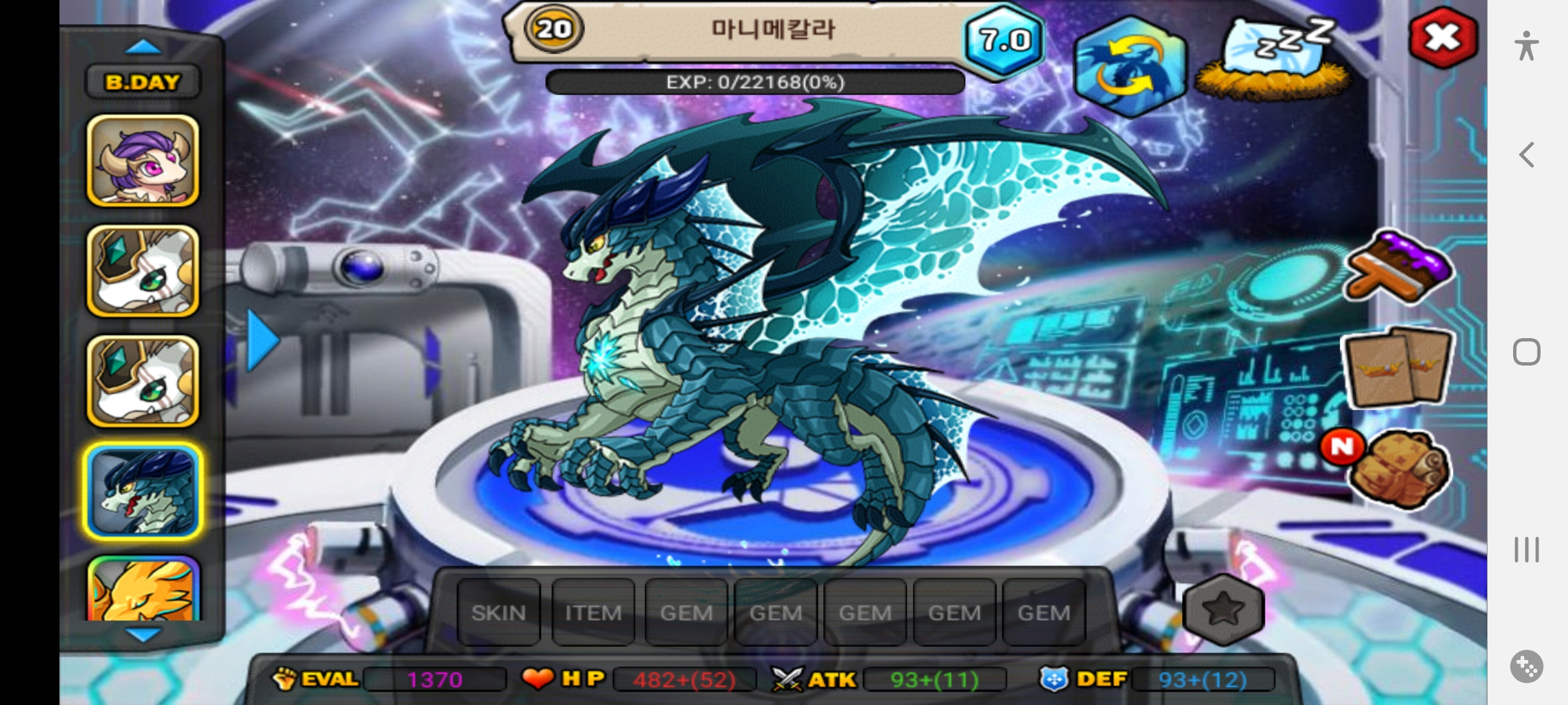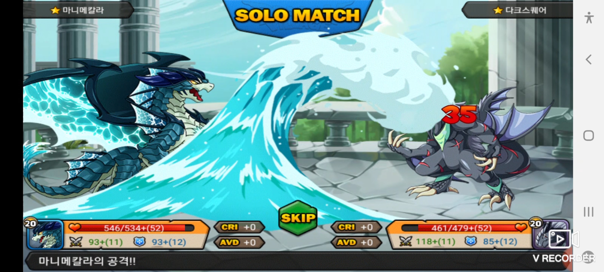 일업 먹길래 성프 기원하며 20레벨 까지만 키웠습니다. 마니메칼라는 파도로 공격을 하고요. 움직이는 스킬입니다.