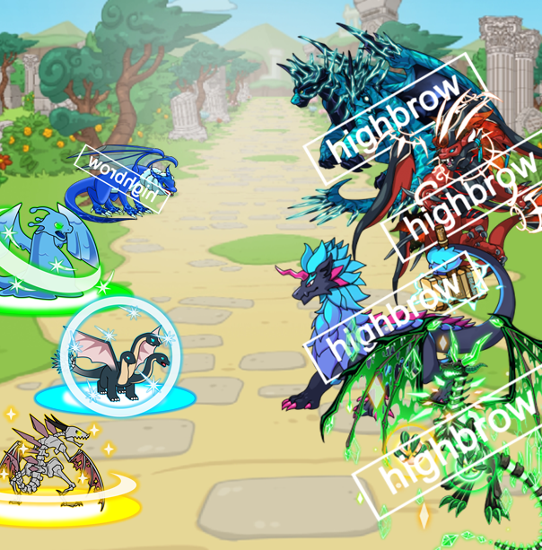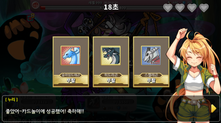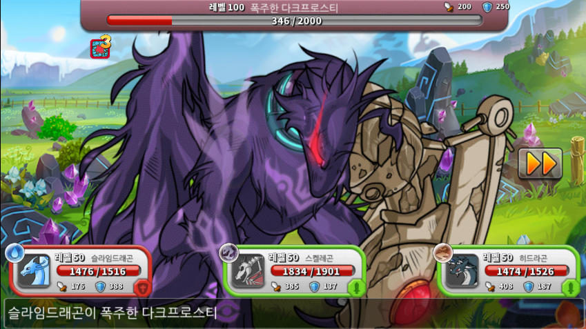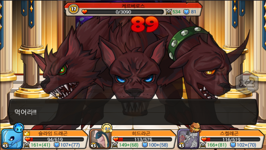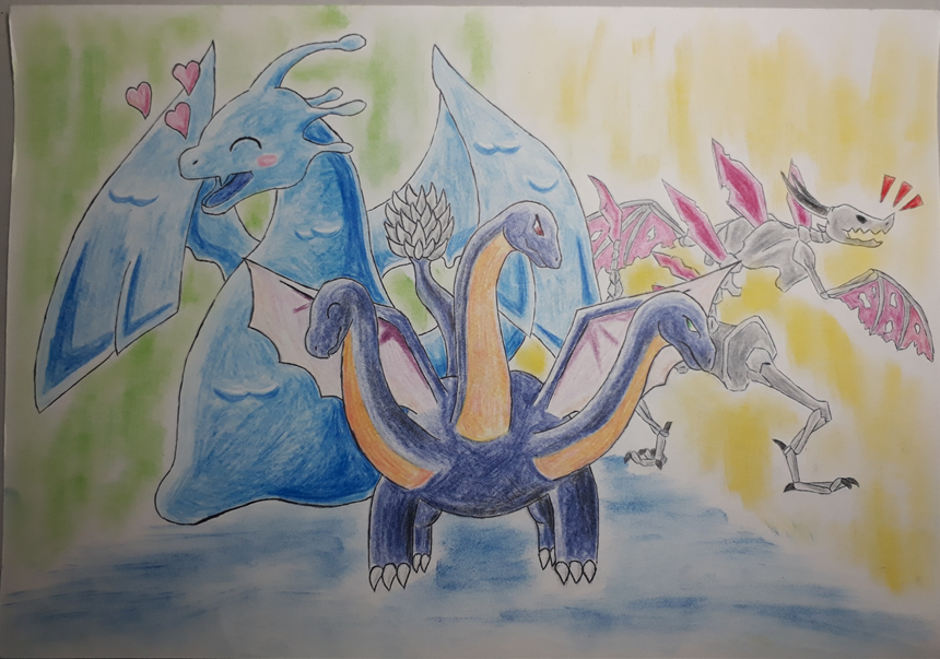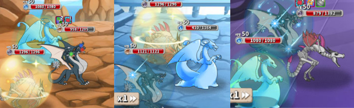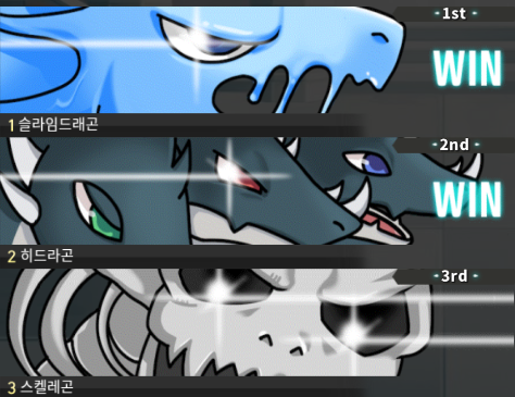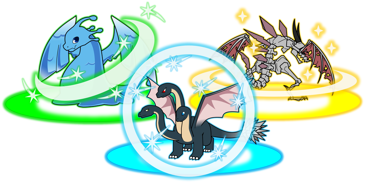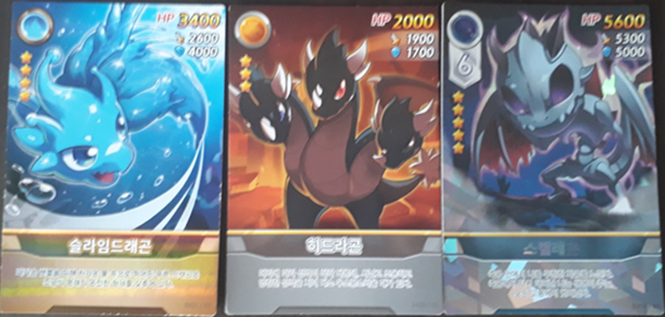 히드라곤, 슬라임 드래곤, 스켈레곤이 3마리가 있는 사진들입니다.