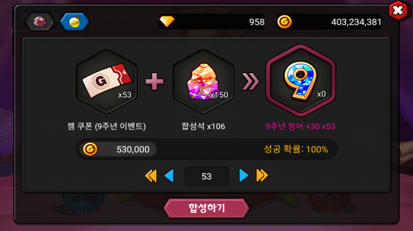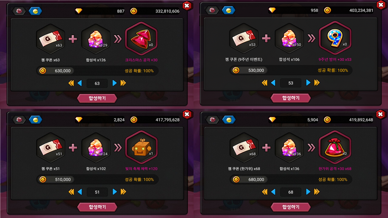 크리마스 공격젬, 9주년 방어젬, 빛의 축제 체력(젬이라긴 보단 로봇에 가까운...) 마지막으로 한가위 공격젬까지 모두 30젬으로 만들었습니다...