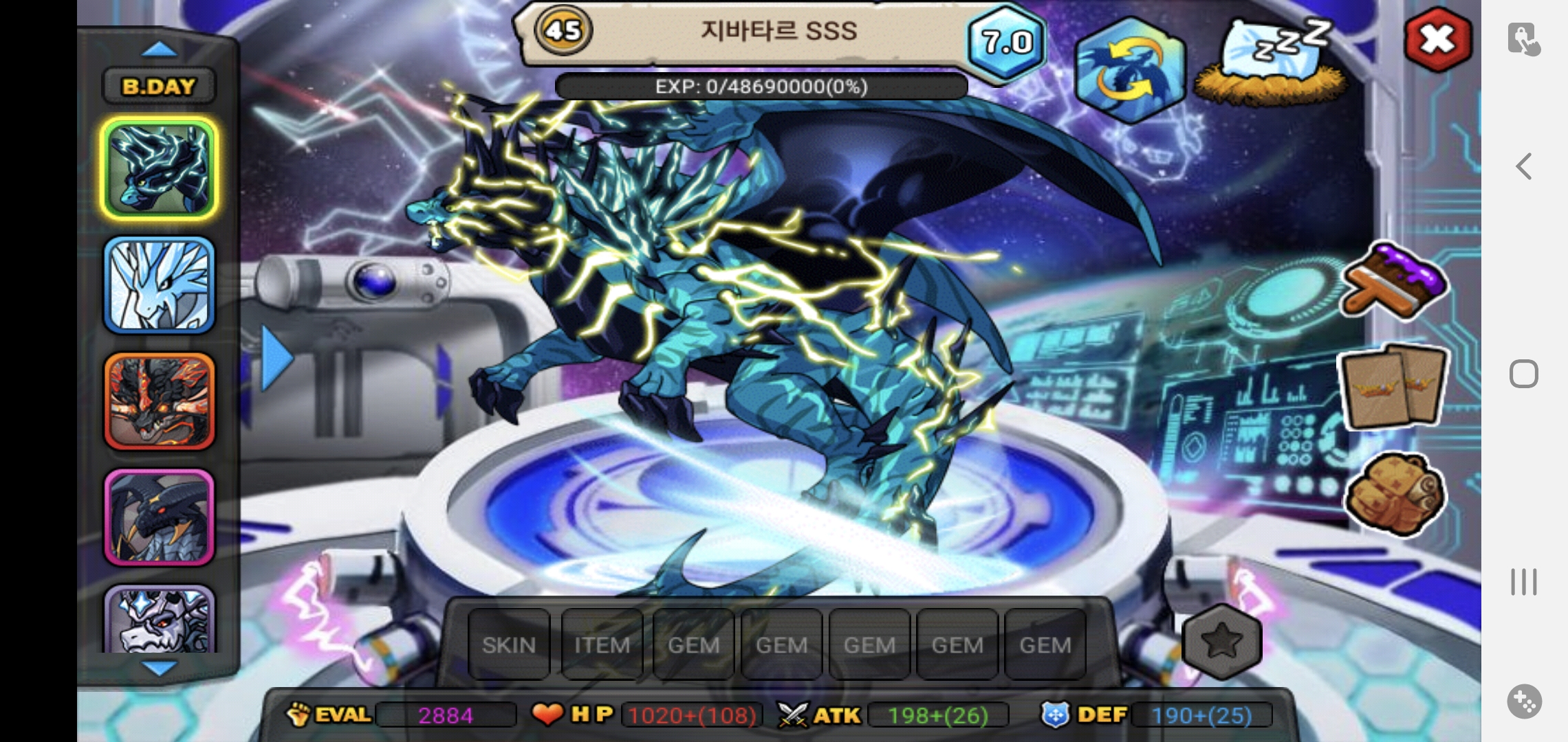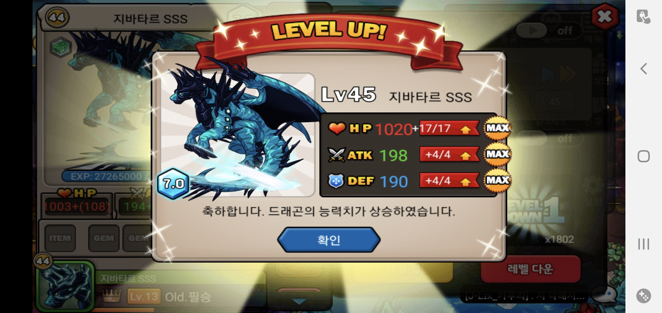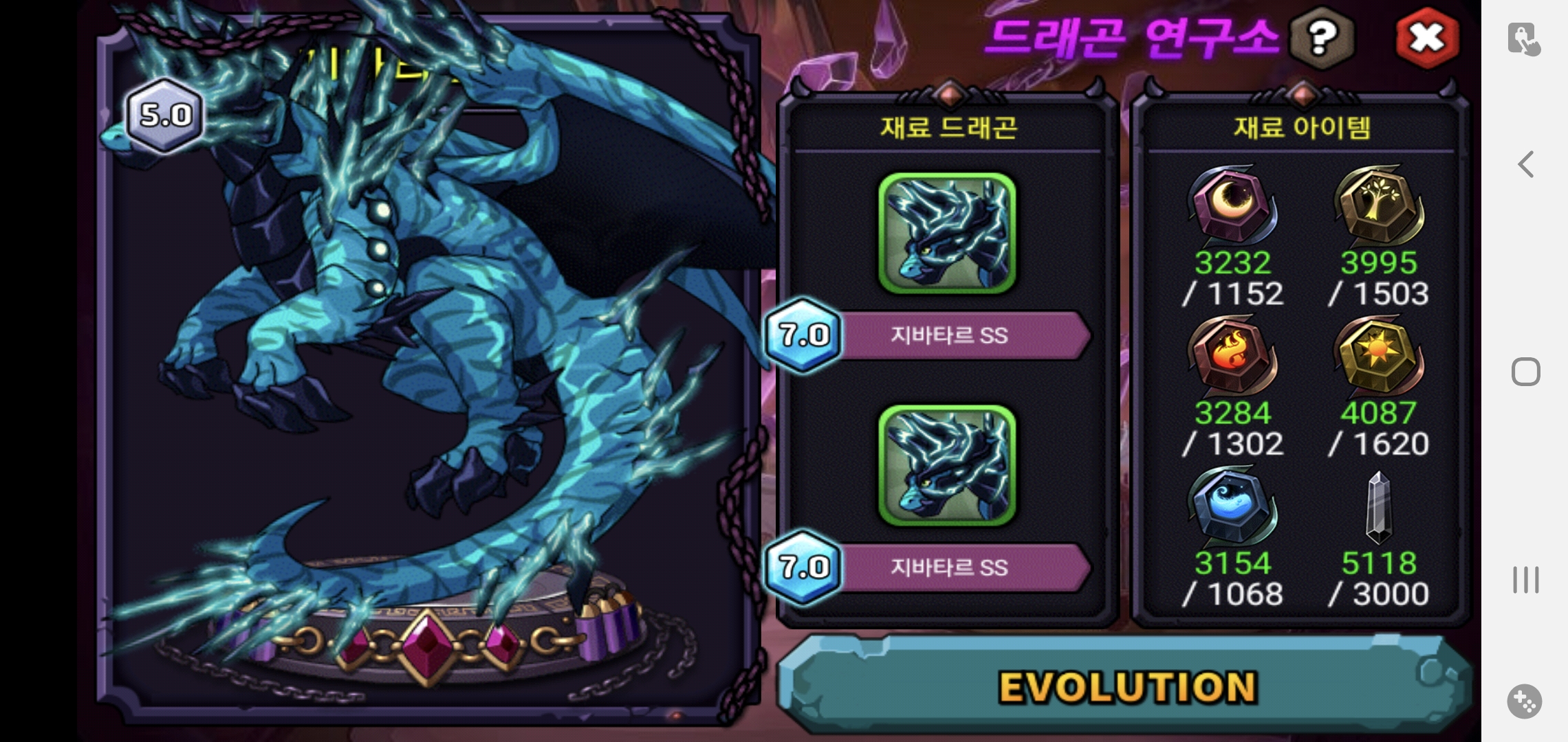 지바타르 SSS가 45층용이라 45렙까지 힘들었지만 결국 7.0으로 다키웠네요 ㅎ