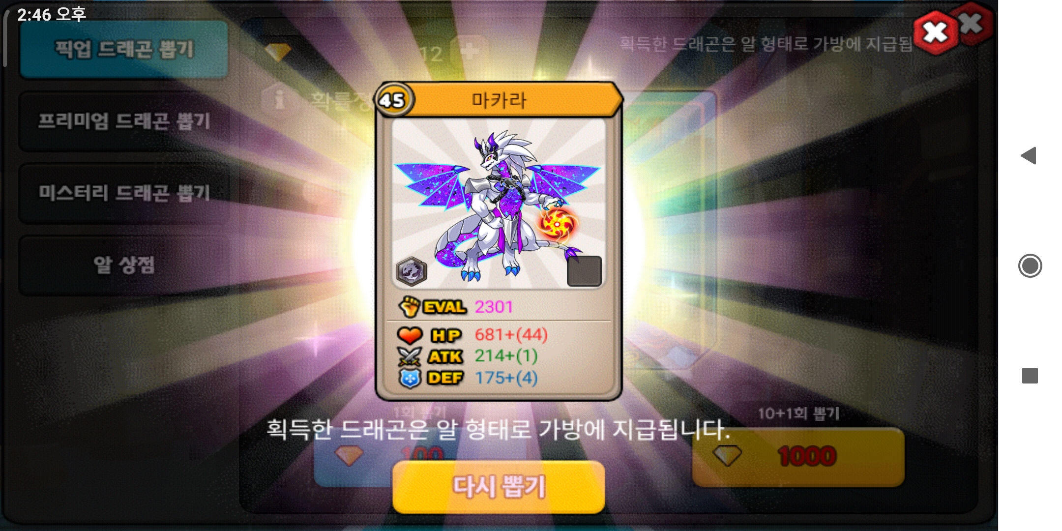 오늘 황다 100개 쓰고 나온것..