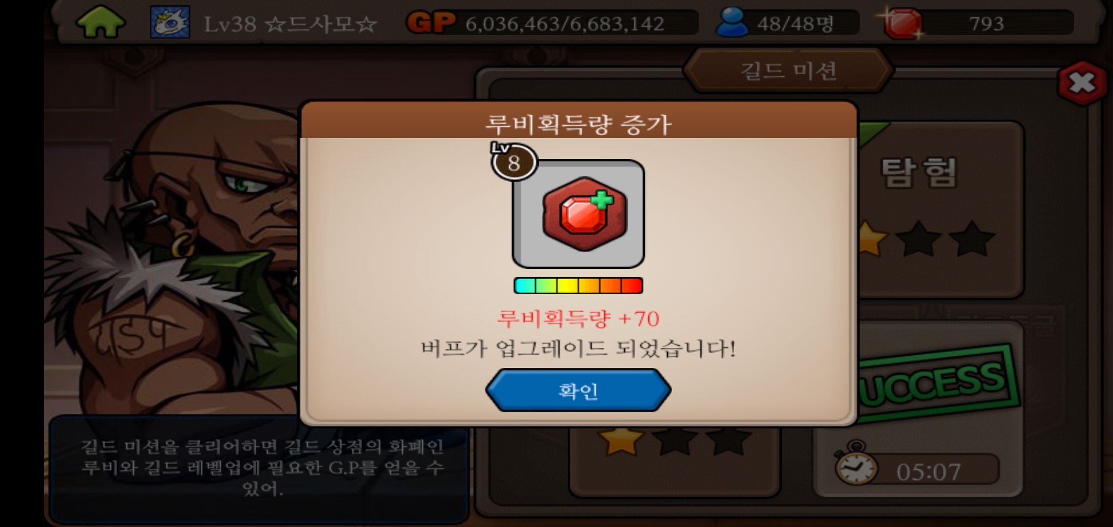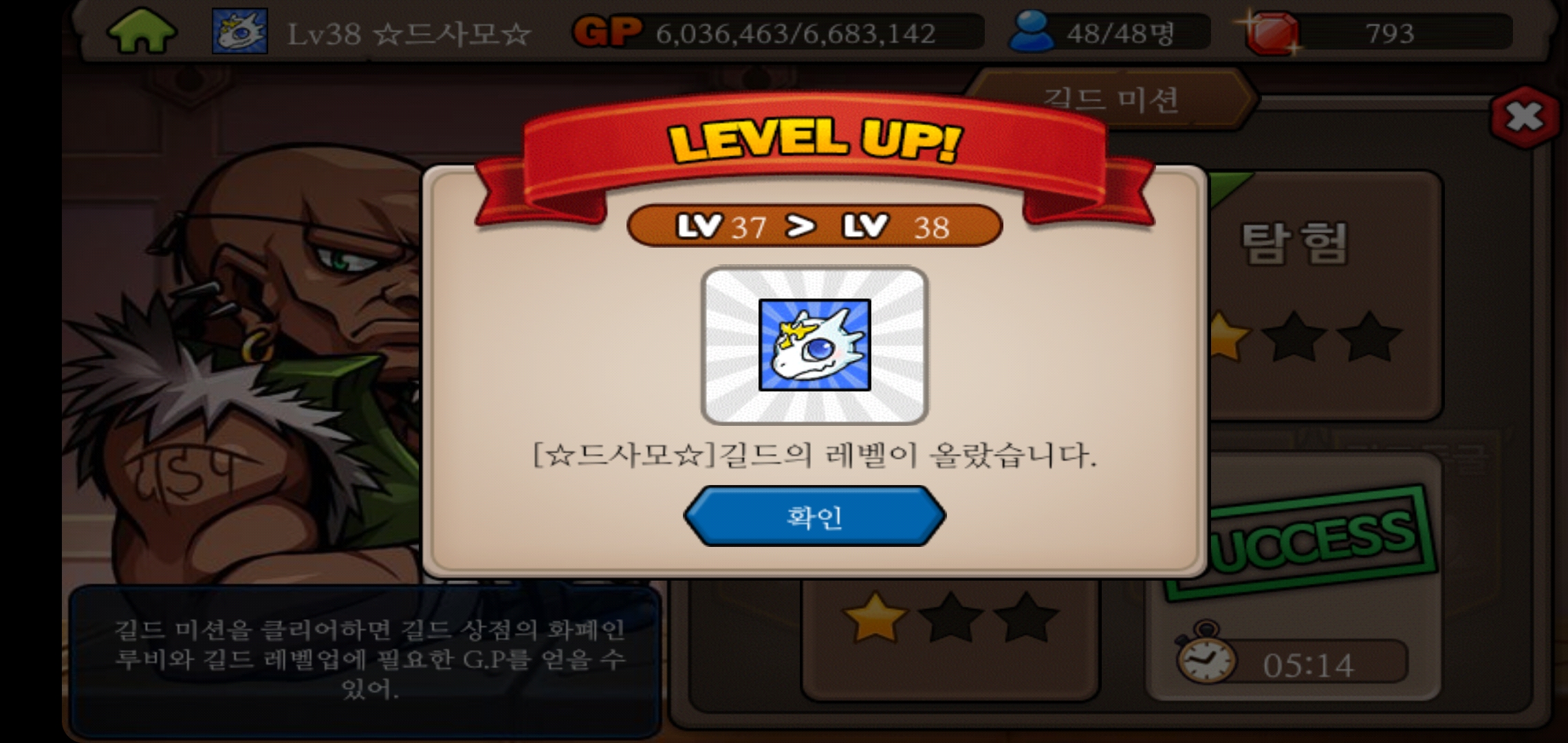 최초로 길드레벨 38렙을 달성했습니다!