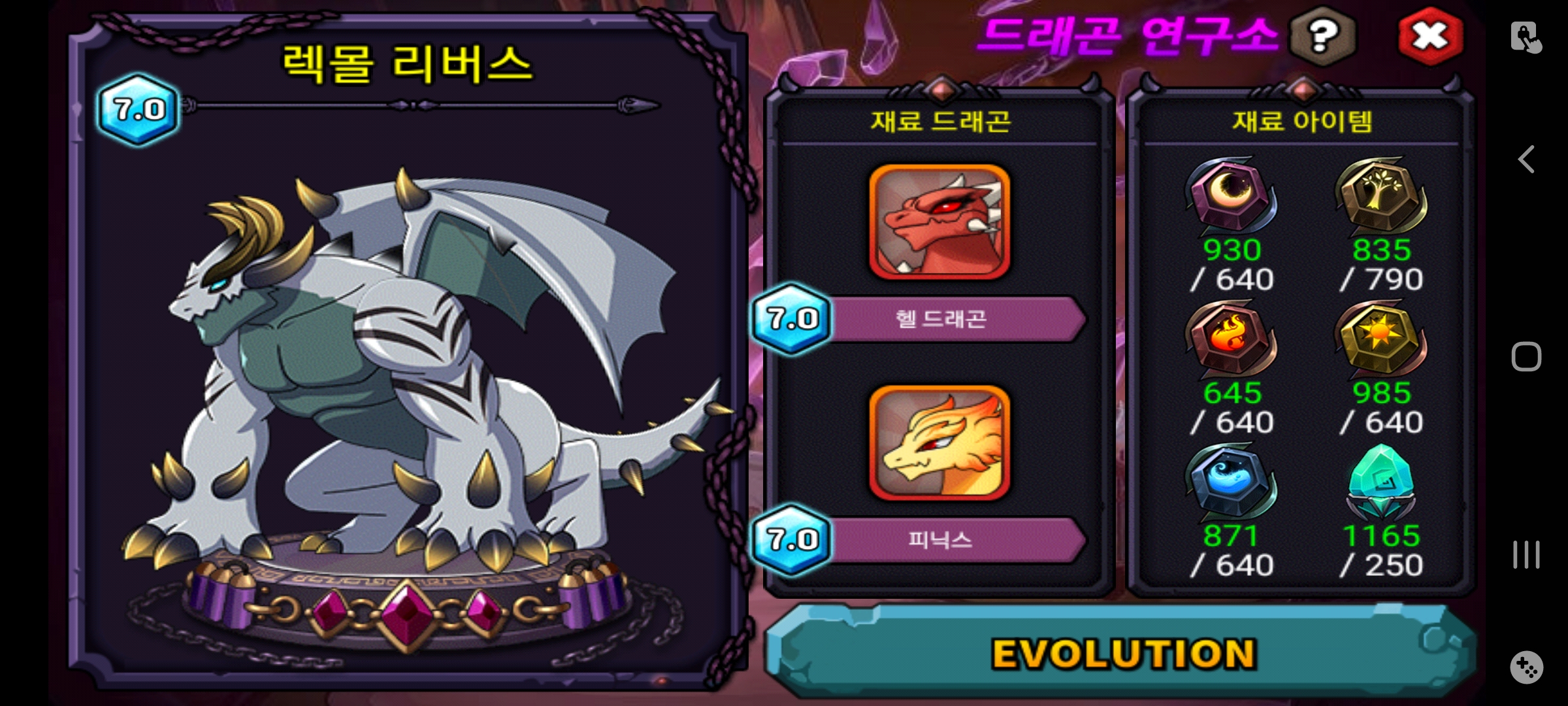 황혼 2마리 완성으로서 챔대 1라 속성별 2마리씩 완성입니다.