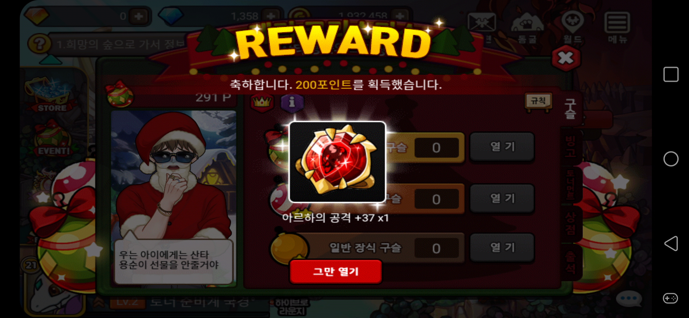 방금 2022.12.24 2:56분 악보주 계정에 아르하 공격 획득'
