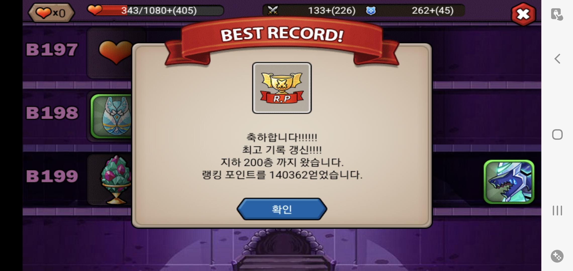 예전에131층까지만 가고 못깼길래 이번에 한번200층까지 밀어봤네요본샤스2개 득ㅎㅎ