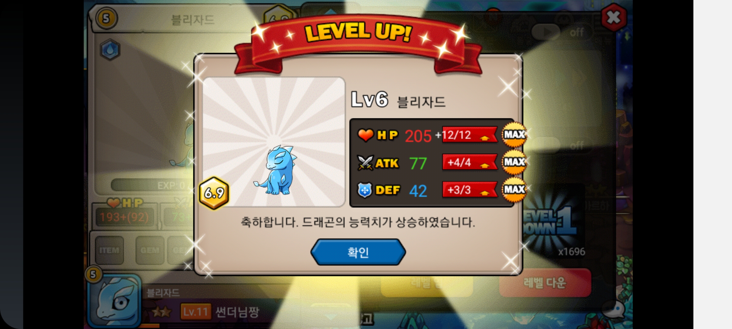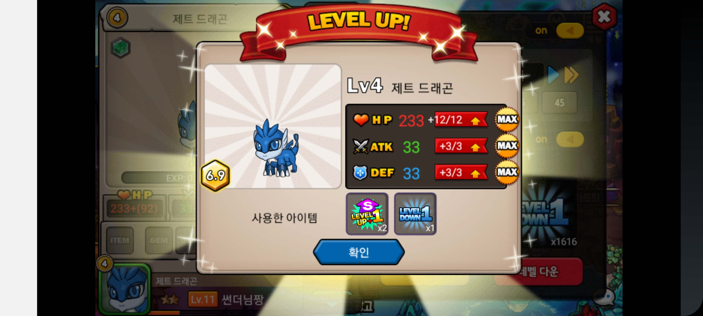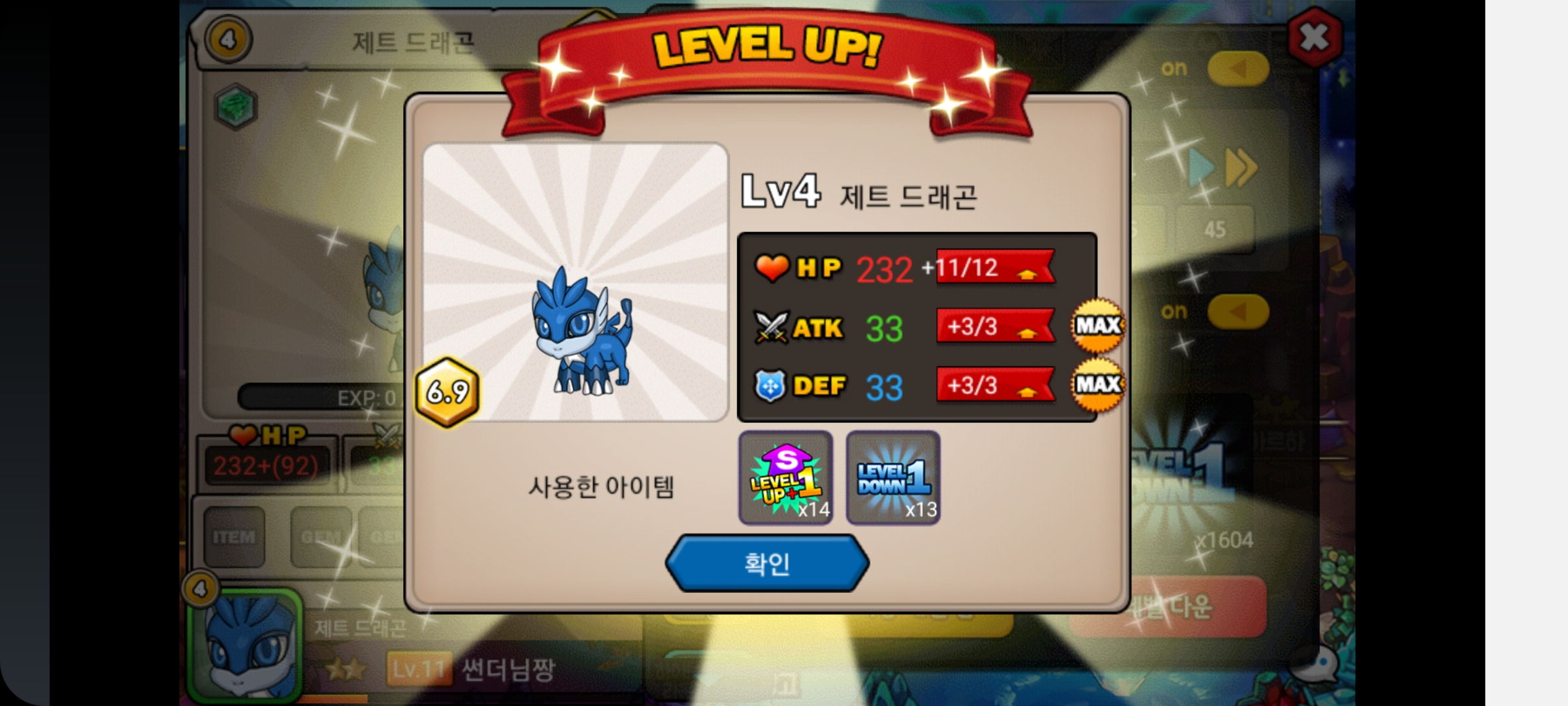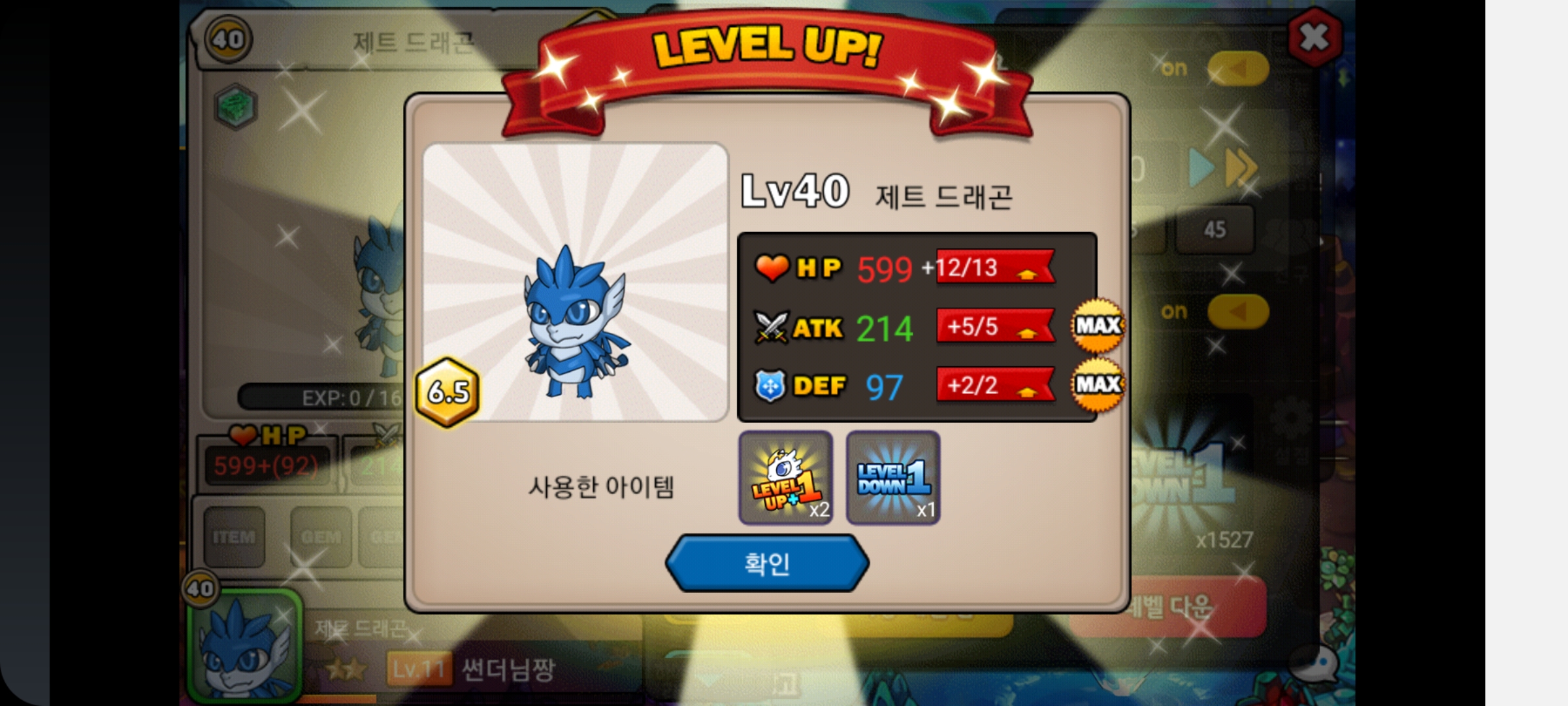 중간에 7연속으로 데삭없이 렙업을 성공해서 엄청난 카타르시스를 느꼈습니다.