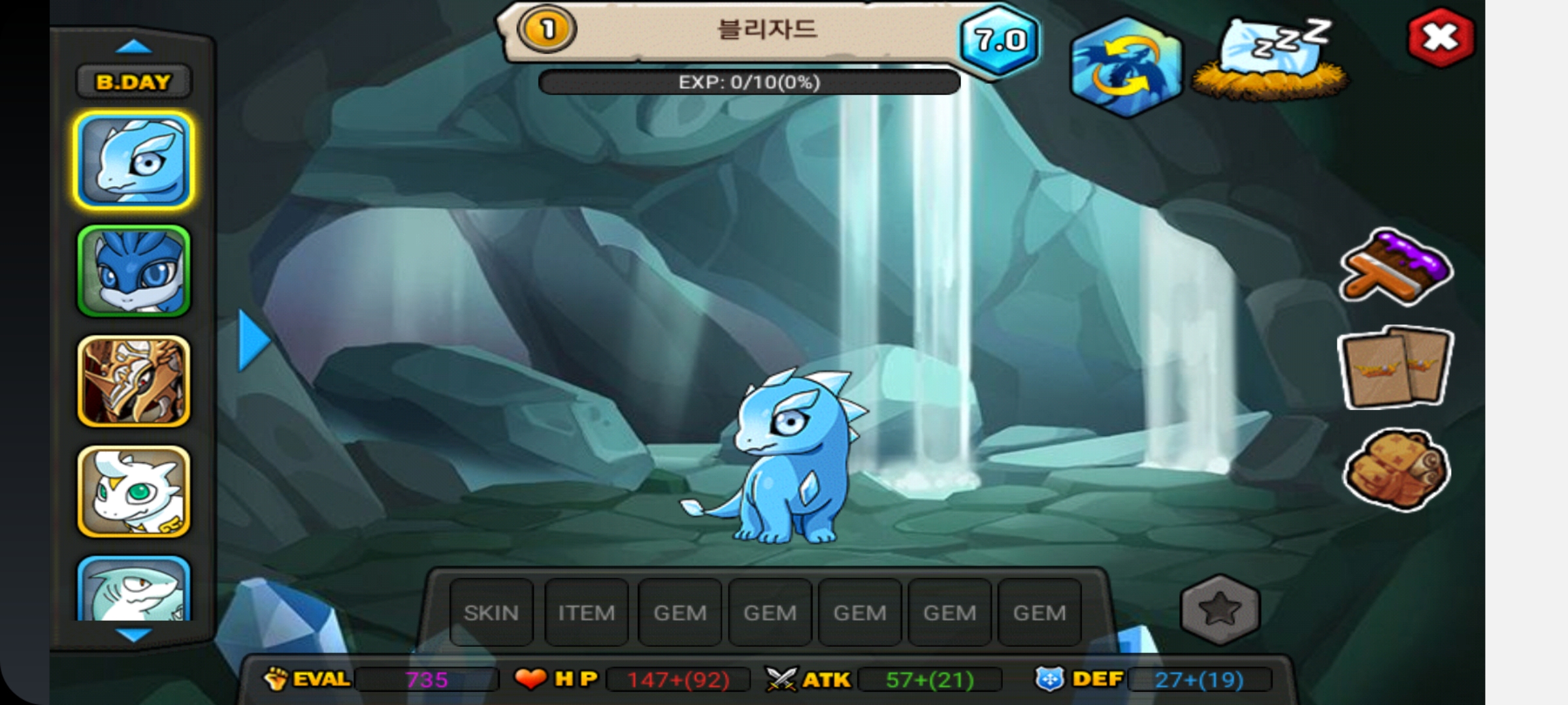 블자는 몸 전체가 하늘색이라 7.0 아이콘과의 조화가 발군입니다.