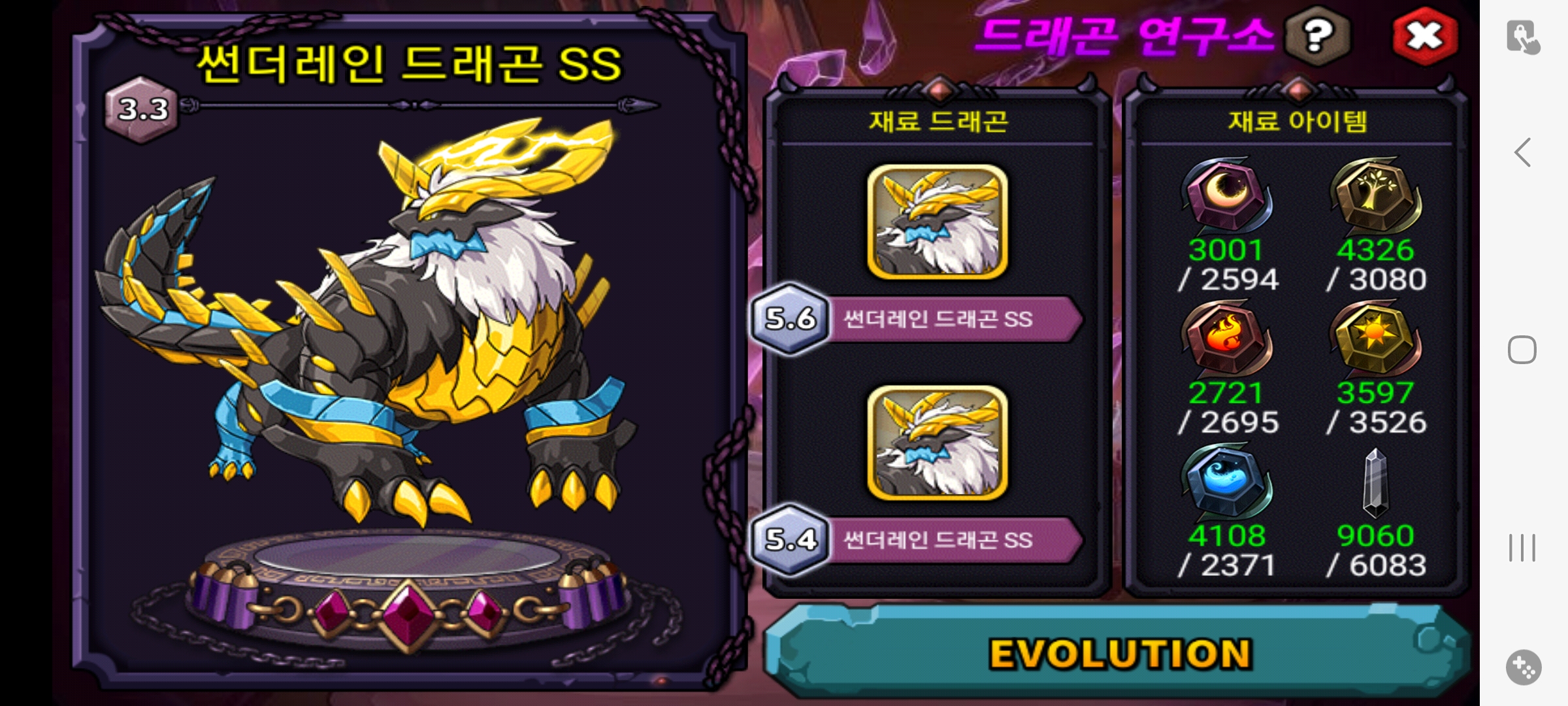 처음 썬레 45렙 키울때 SSS만들생각없어 대충키웠더니 재료가 많이드네요