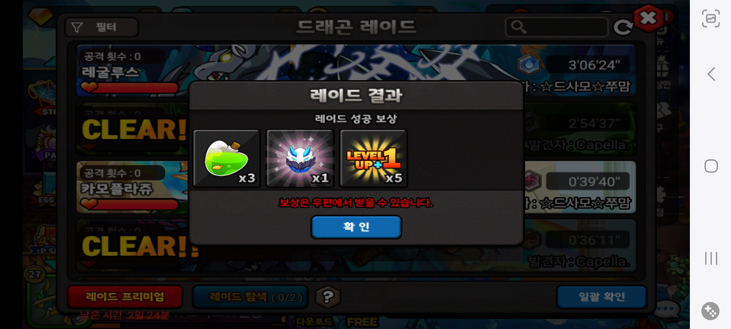 한달동안 레이드 노드랍인게 이렇게 보상되네요
