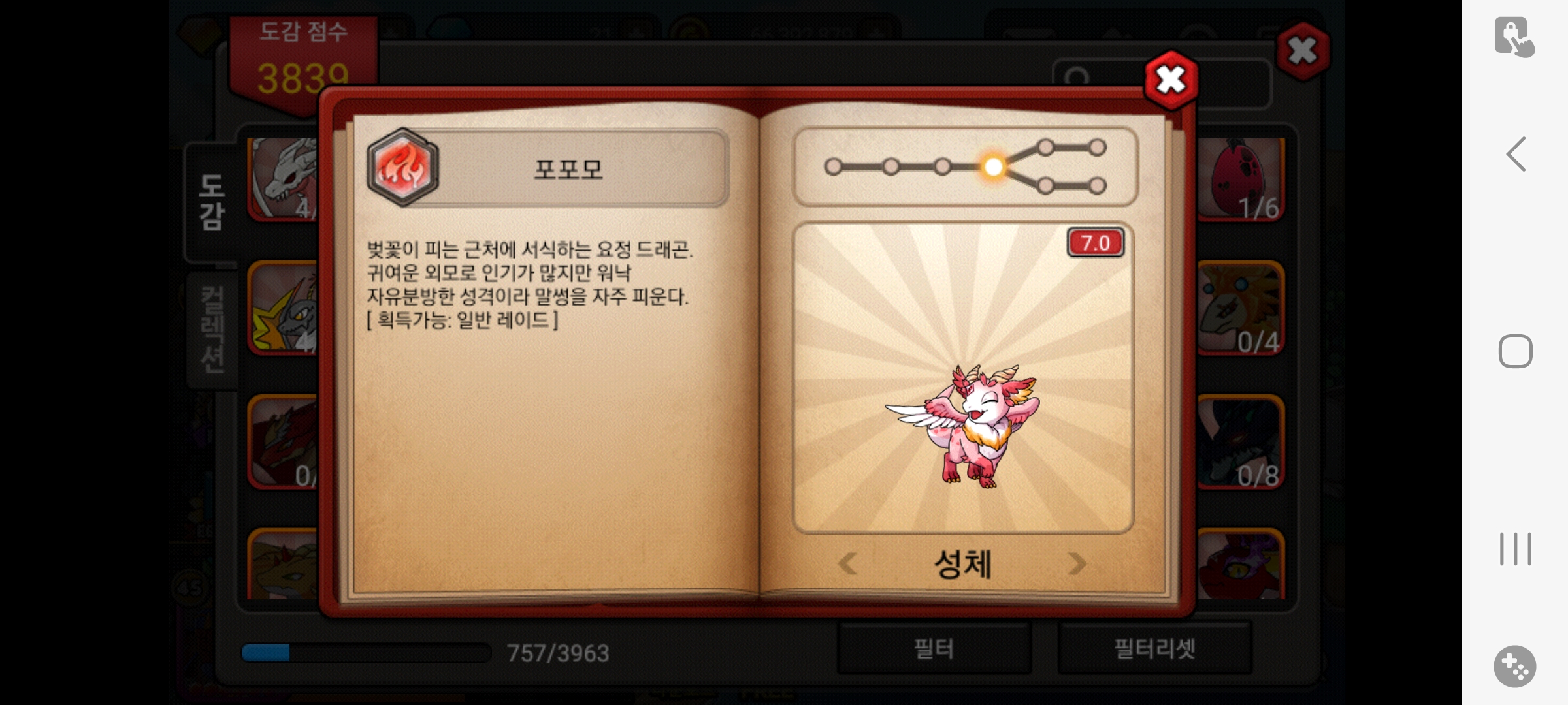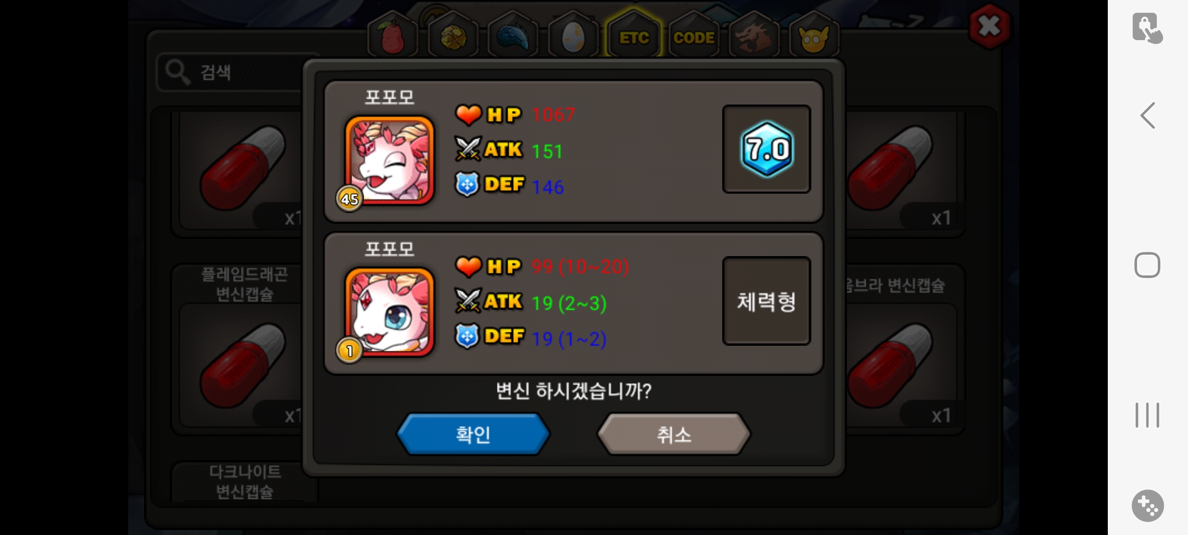 성체도 45렙 7.0 찍는거 힘들었는데 얘는 캡업으로 성장폭 20을....