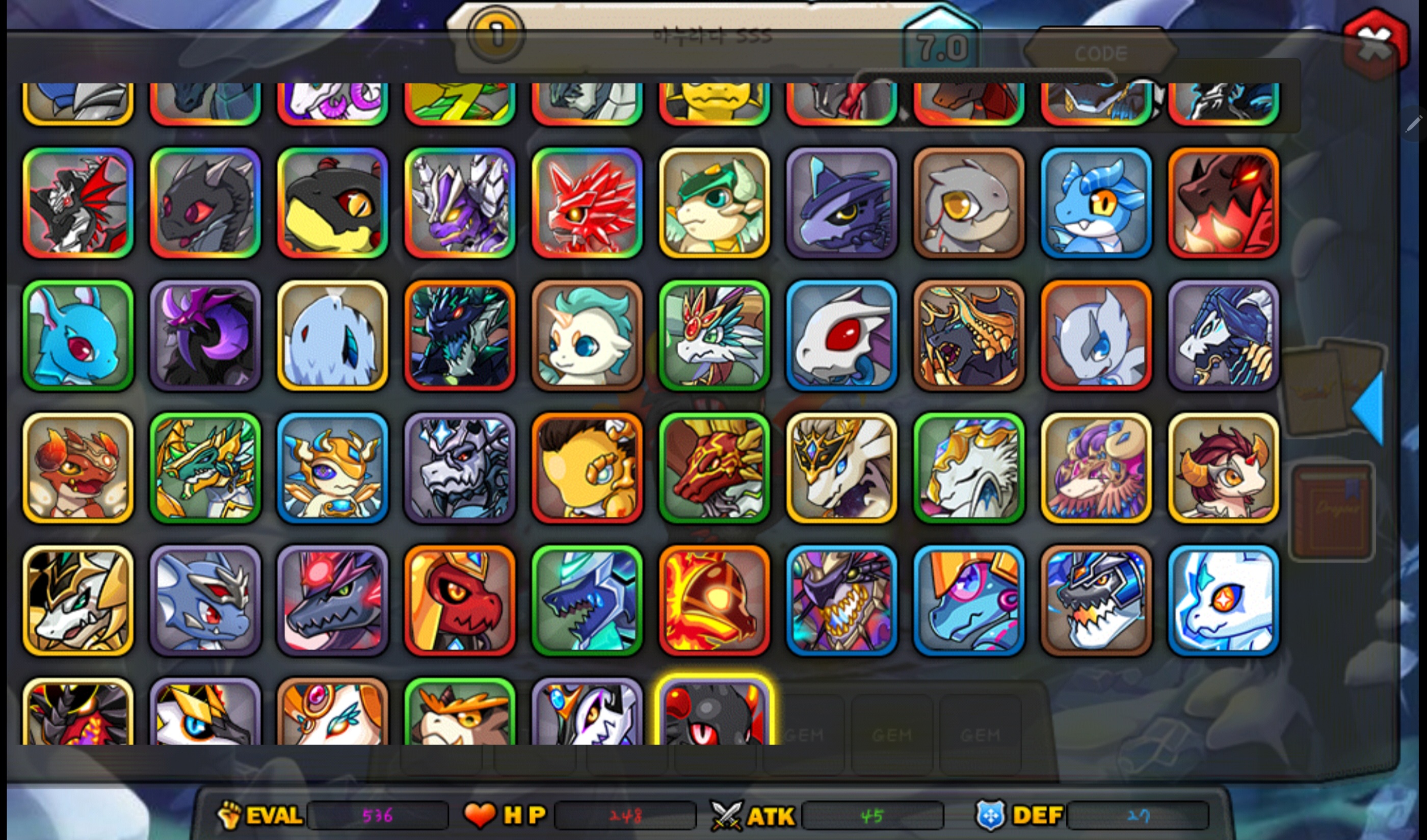 시타엘 ,나이트, 카코1~27탄 모두 부화 시켰습니다