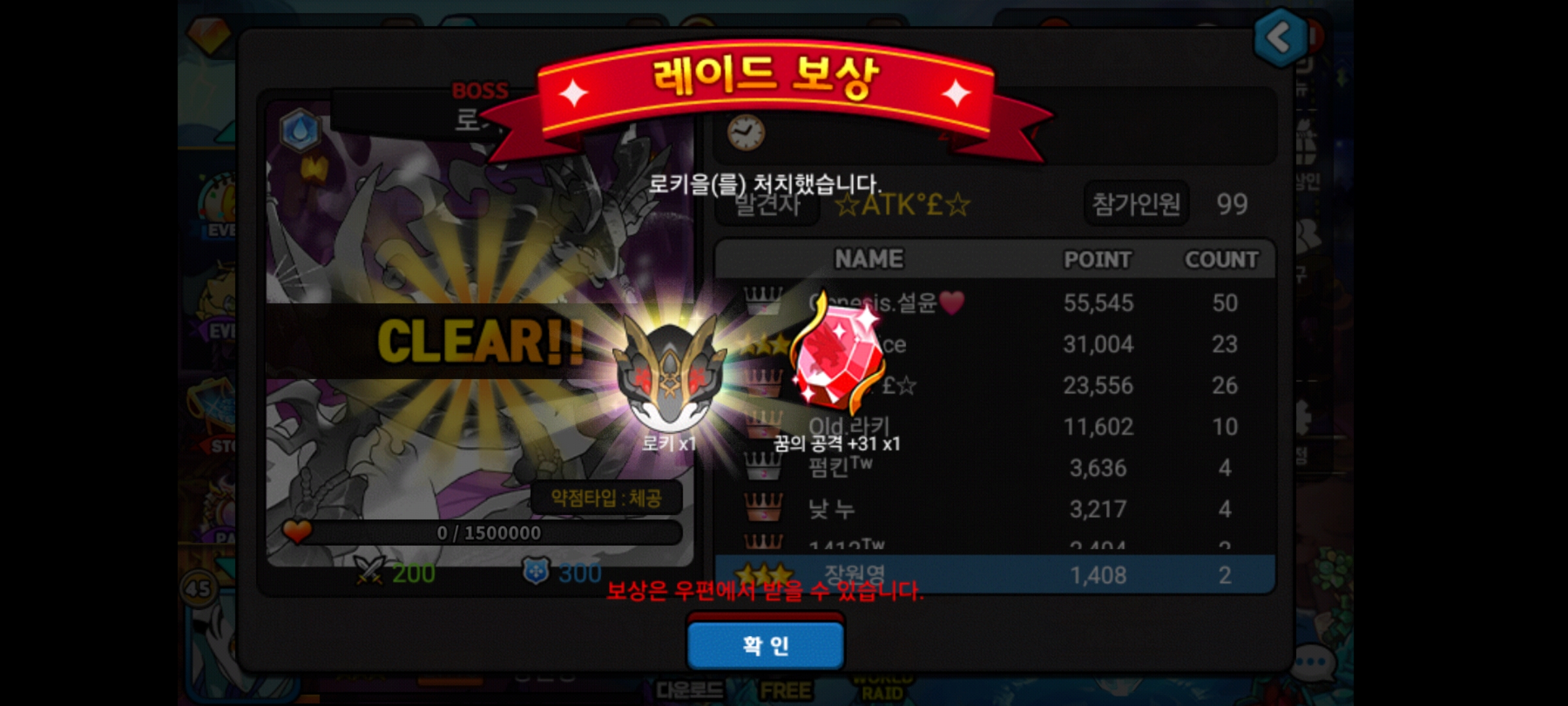 오늘 왕젬도 7개나 뜨고 로키까지 떠주네요 오랜만에 레이드하면서 행복 max