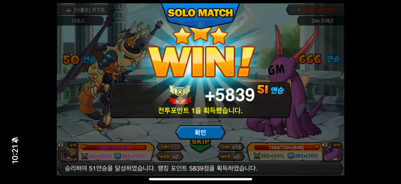 게임 시작한지 2year반만에 50연승 고지를 밟아보네요 :)