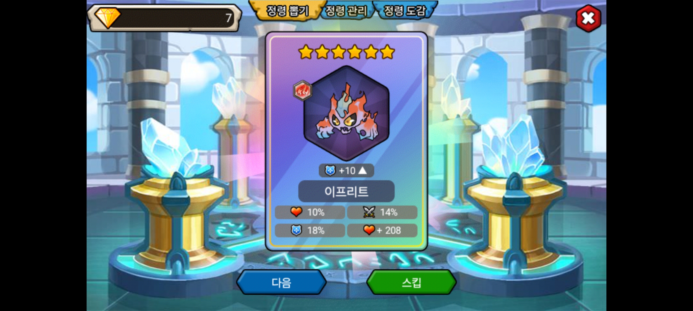 그리고 나서 123이벤트 10만원 지르면 주는 티켓으로 정령뽑기를 했는데 이 친구가 나와줬네요