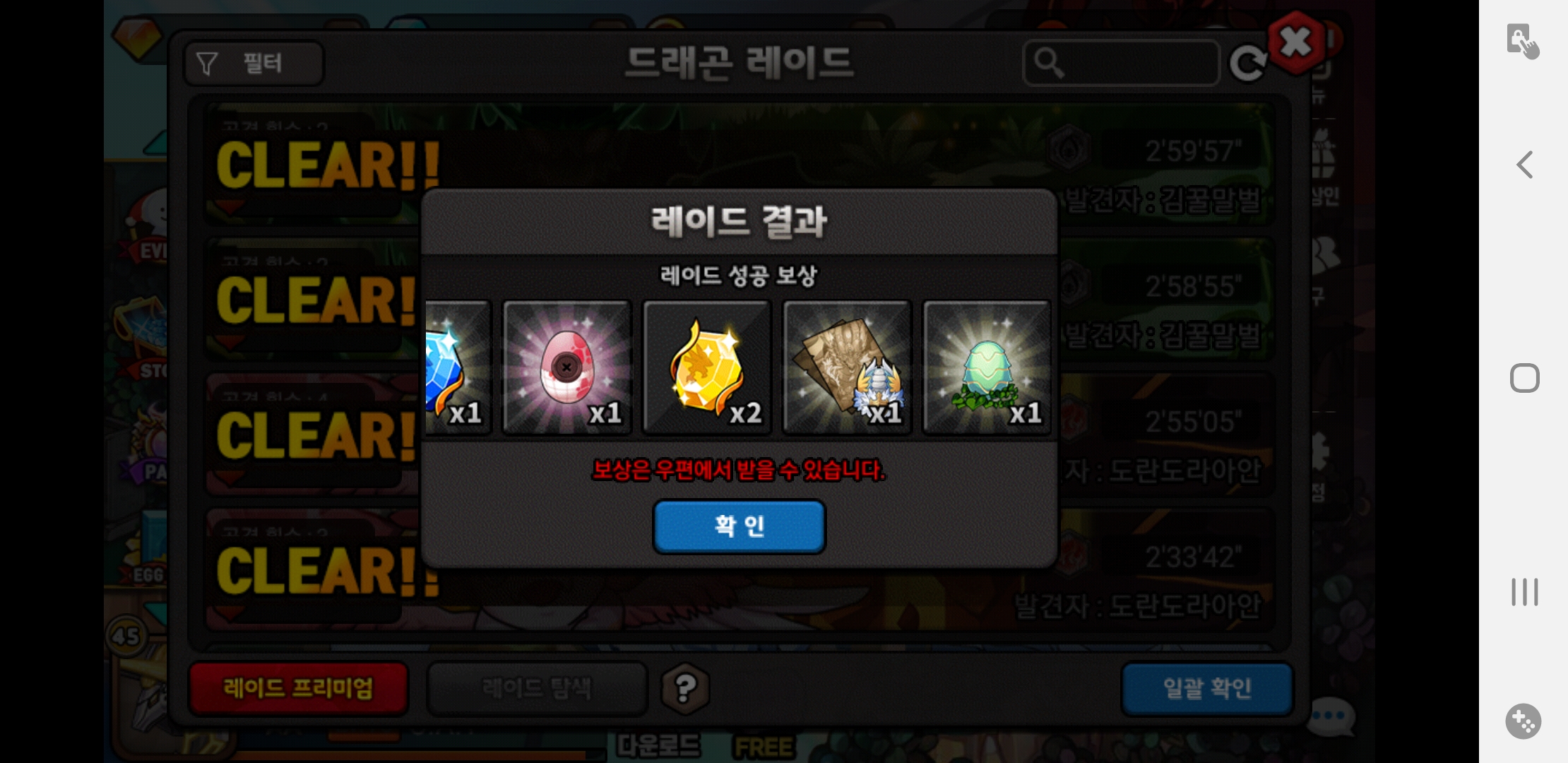 레이드 약 30~40 몰아까기 결과
