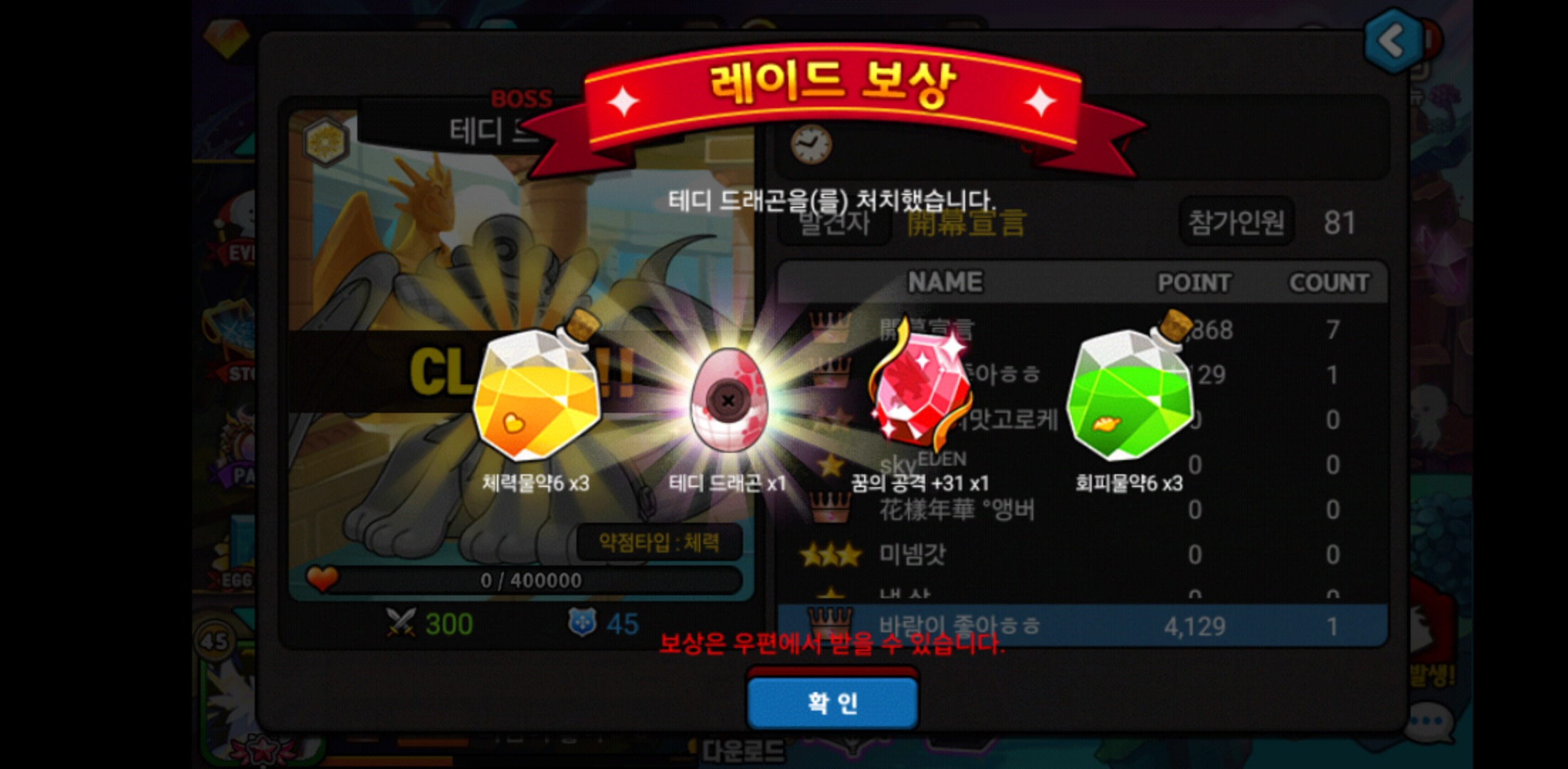 동관인데 첫 레이드 알