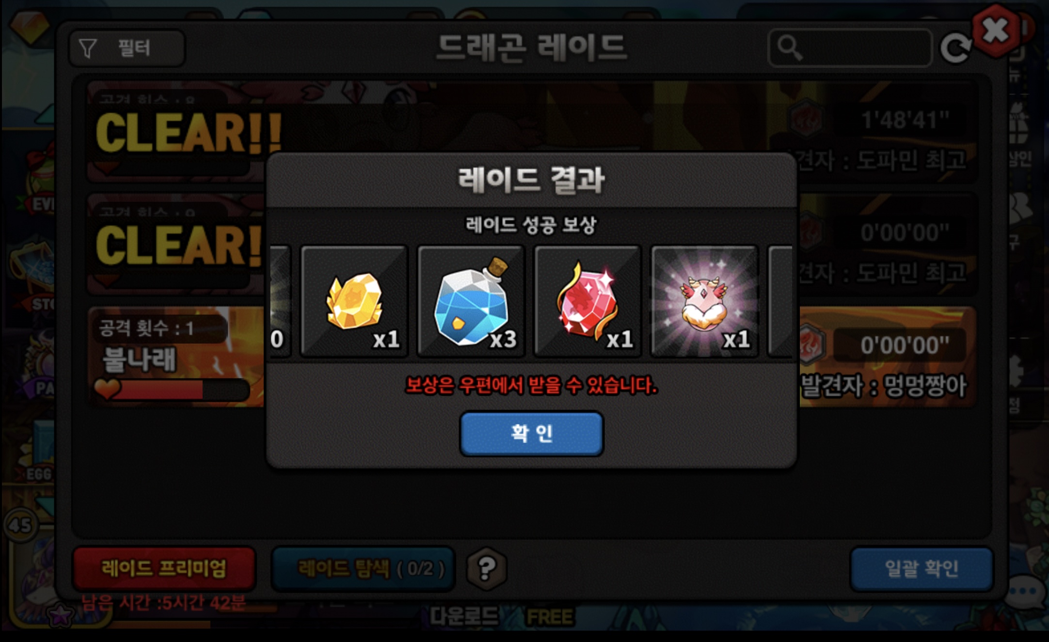 본계+부계로 레이드 캐고 있었는데 계정마다 하나씩 나옴ㄷㄷ