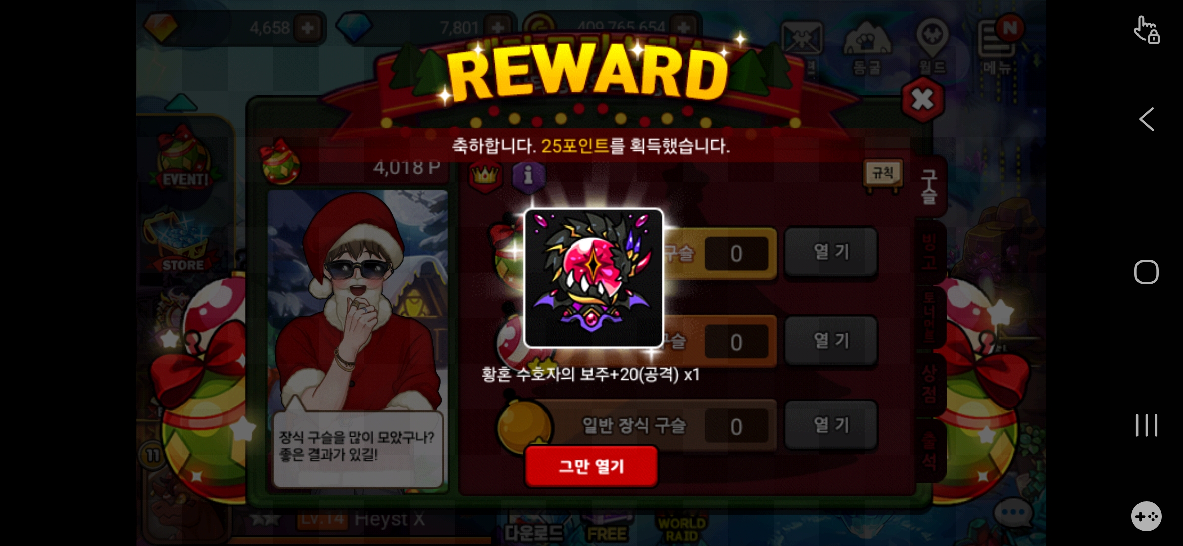 오늘자 크리스마스 이벤트 무료뽑 결과
