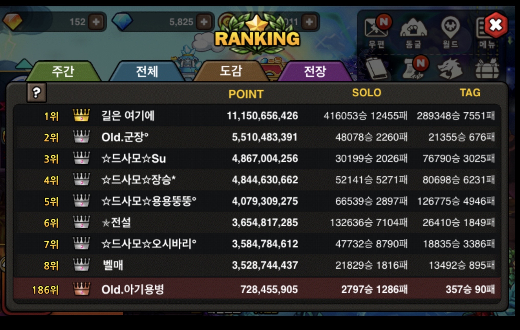 272일차 은쐐기에서 186위까지 :)