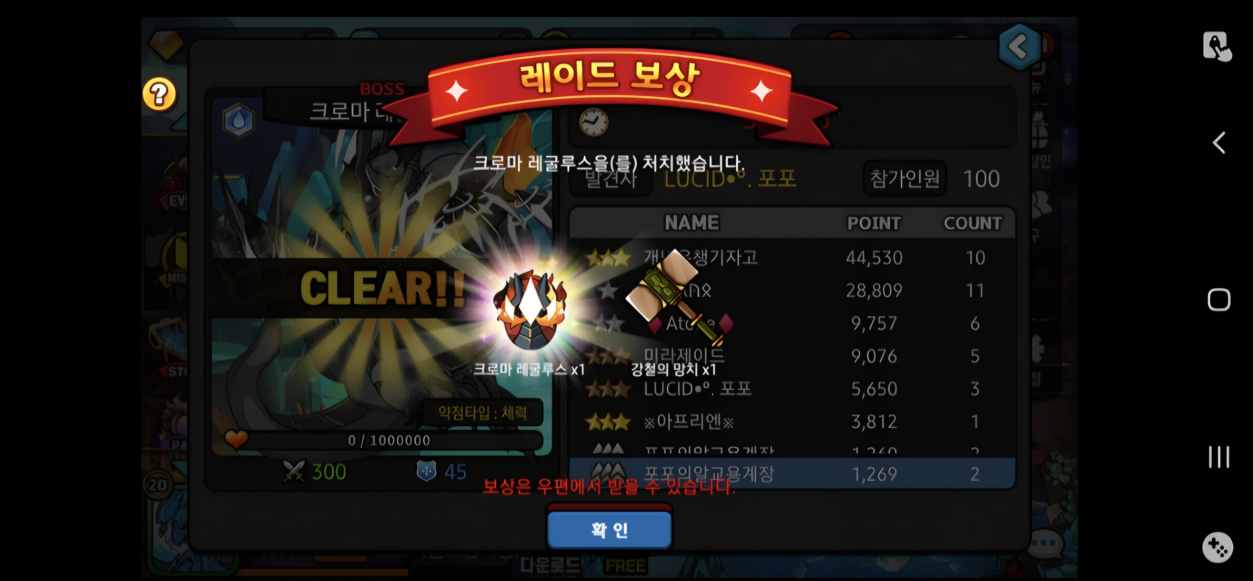 하루에 크로마 알드랍 2개 내일이 무섭읍니다....