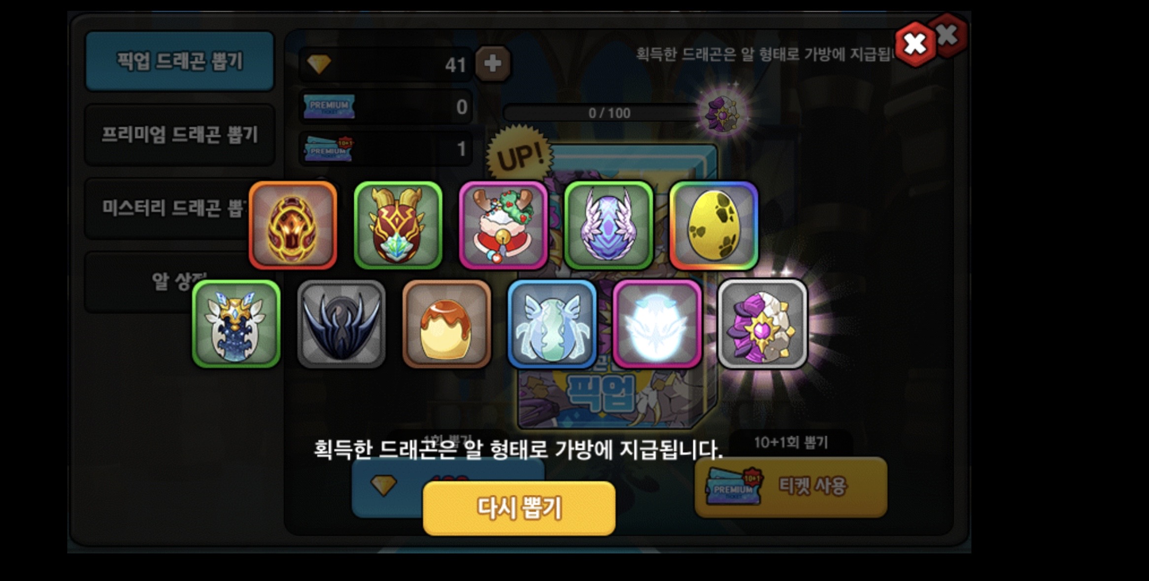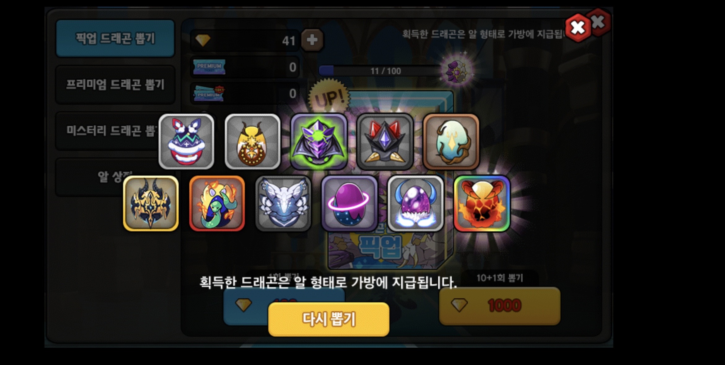 이번 프뽑으로 건진 용: 시타엘 센투라 타나토스 조화룡 쿠베라 롱기누스x2 아르고