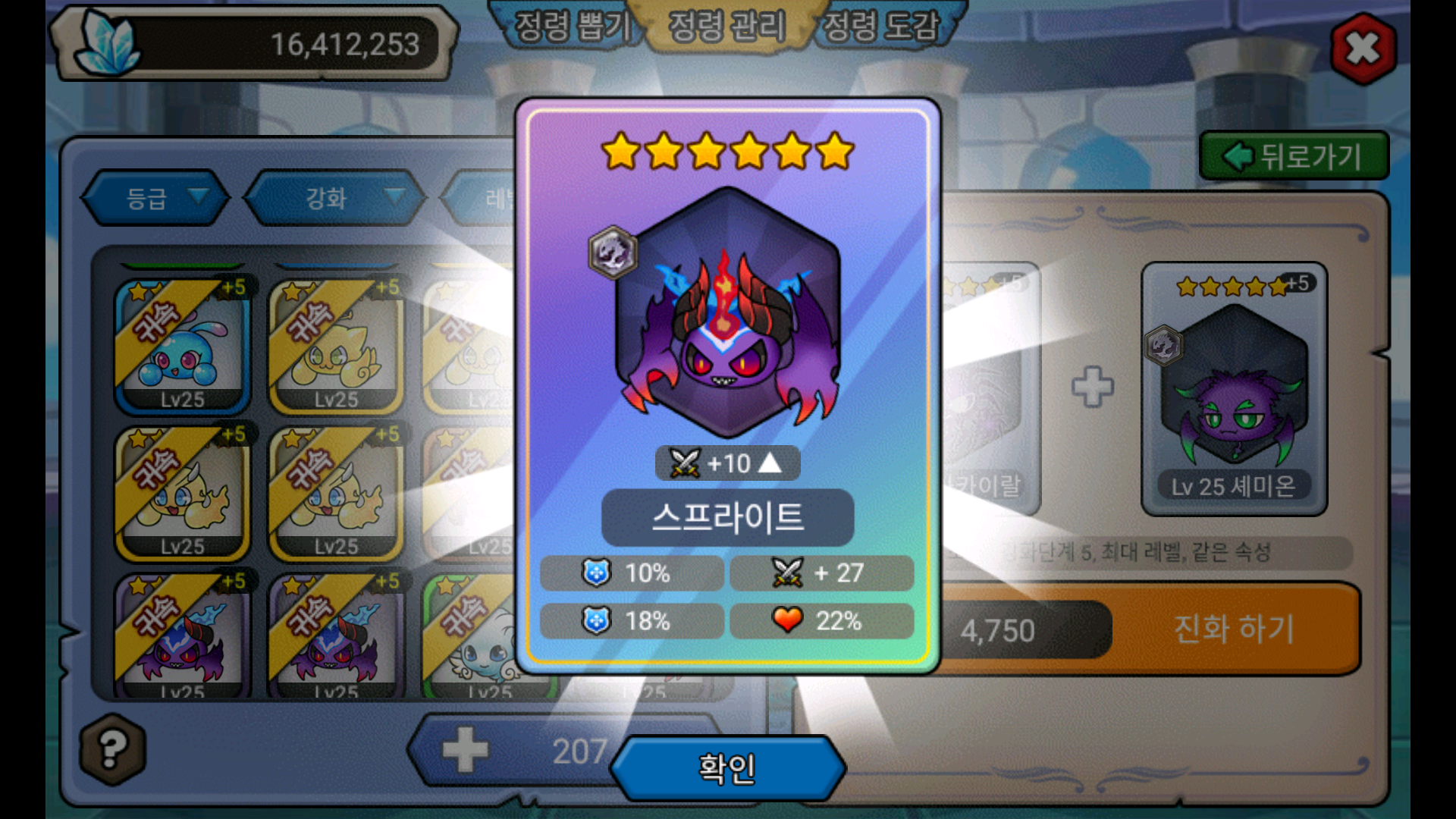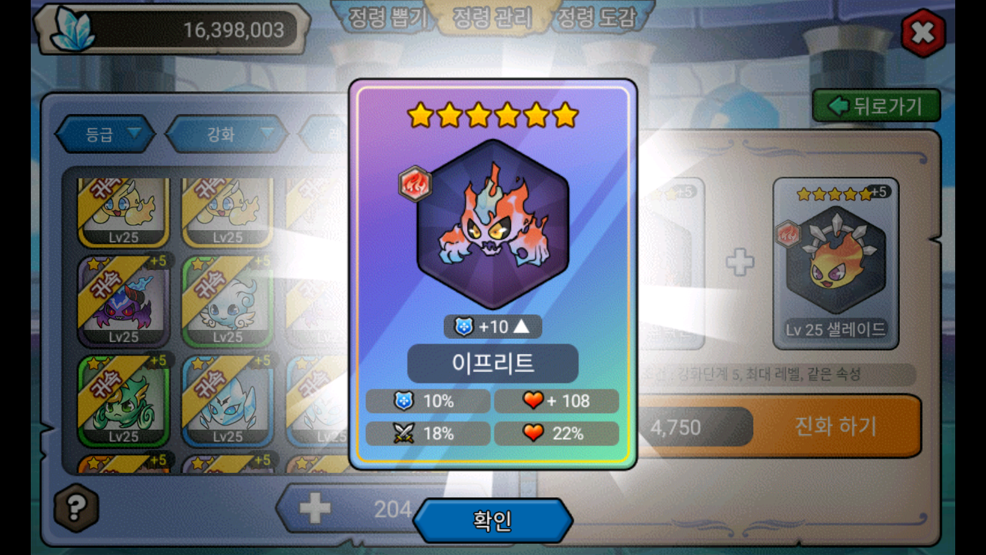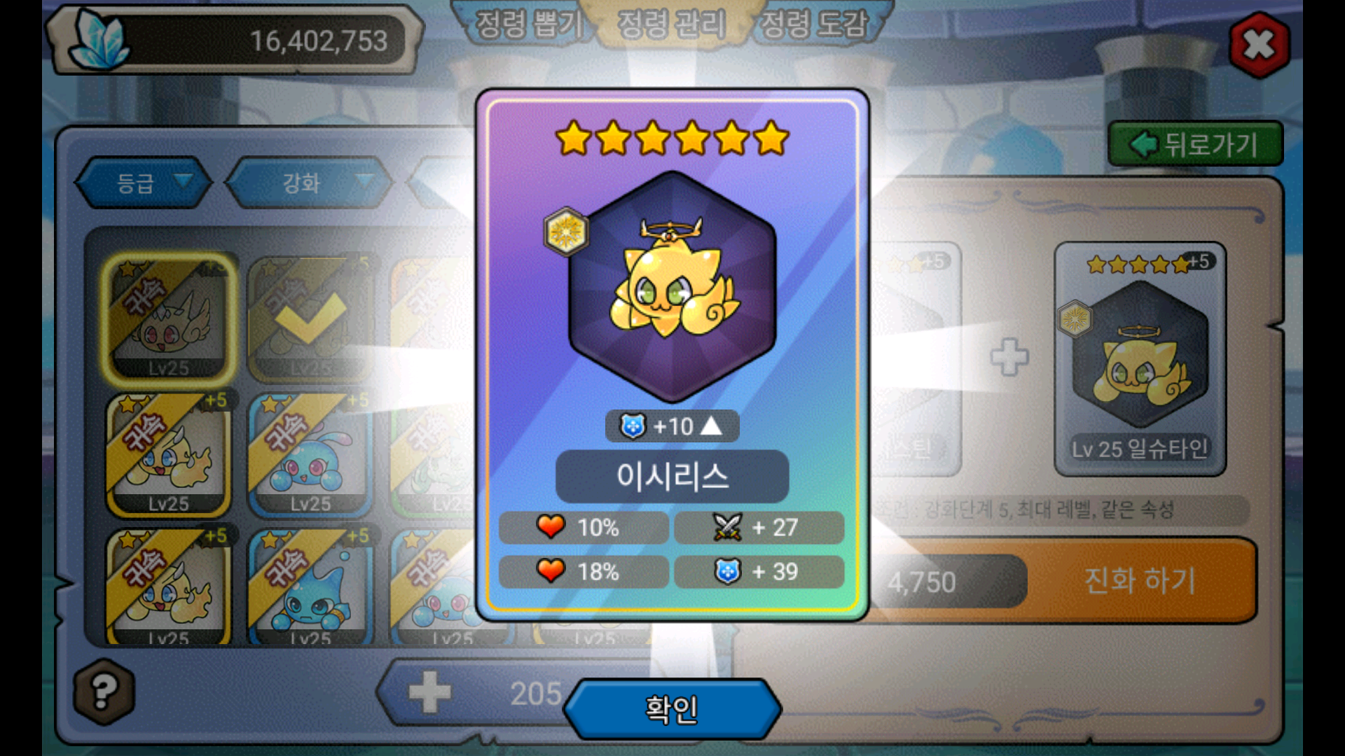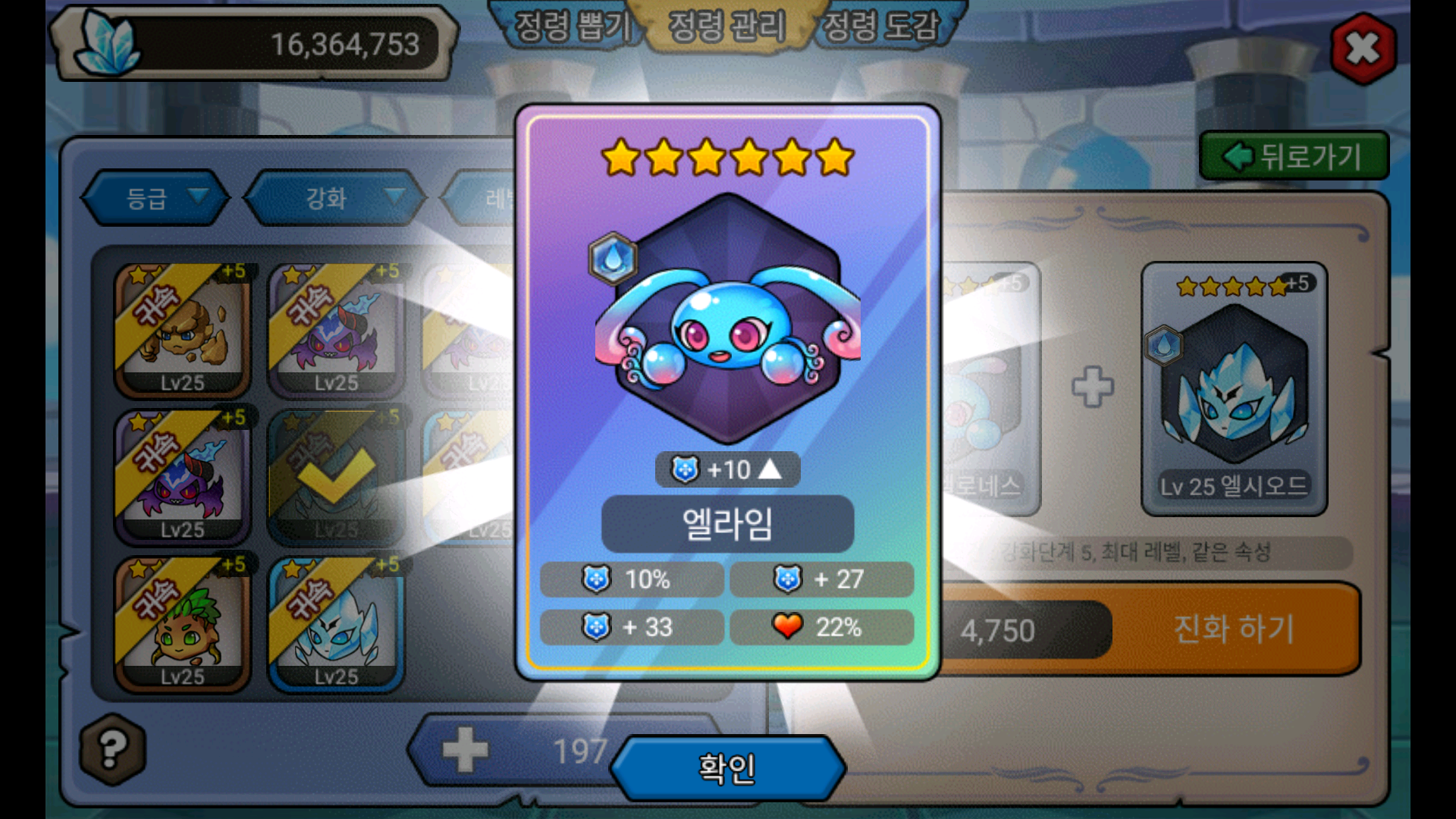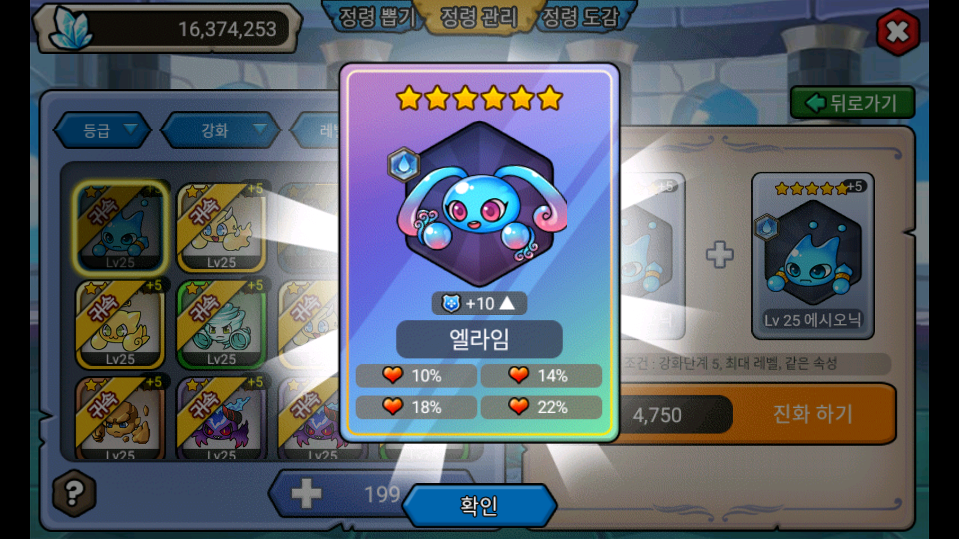 5성 정령 34개 합쳐 봤어요.