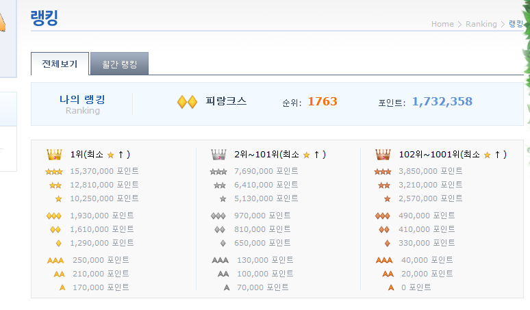 아이고.. 요즘 콜로를 않하니까 랭킹이 많이 떨어졌네....ㅠㅠ