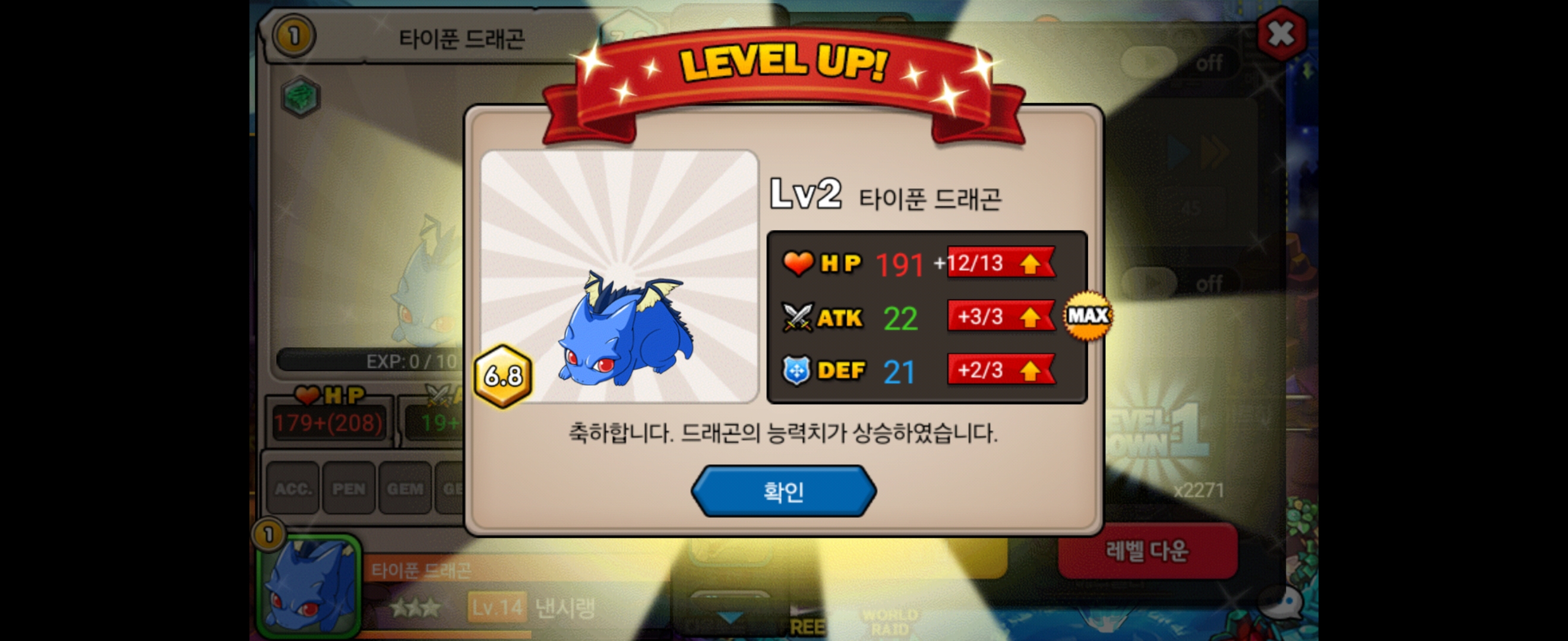 그런데 앞서 서술한 방법으로 레벨을 올리다보면 6.0 정도의 등급에서 부터는 레벨을 올릴 때 방어력은 확정적으로 max가 뜨게 됩니다.