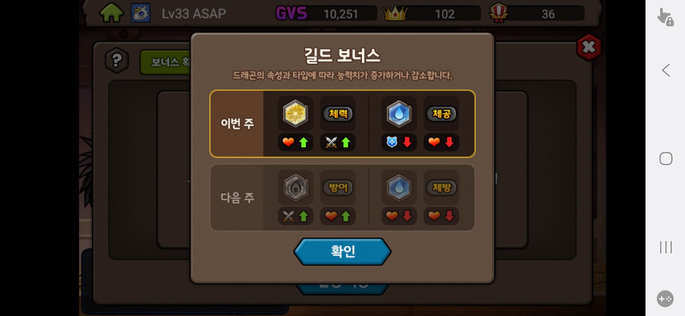 고수들이야 매주 버프에 맞는 속성과 타입의 용들을 준비하겠지만 우리 뉴비 분들은 우선 좋은 정령 3개 이상을 준비해서 매주 돌릴수 있게끔 하는게 중요하다고 생각합니다.