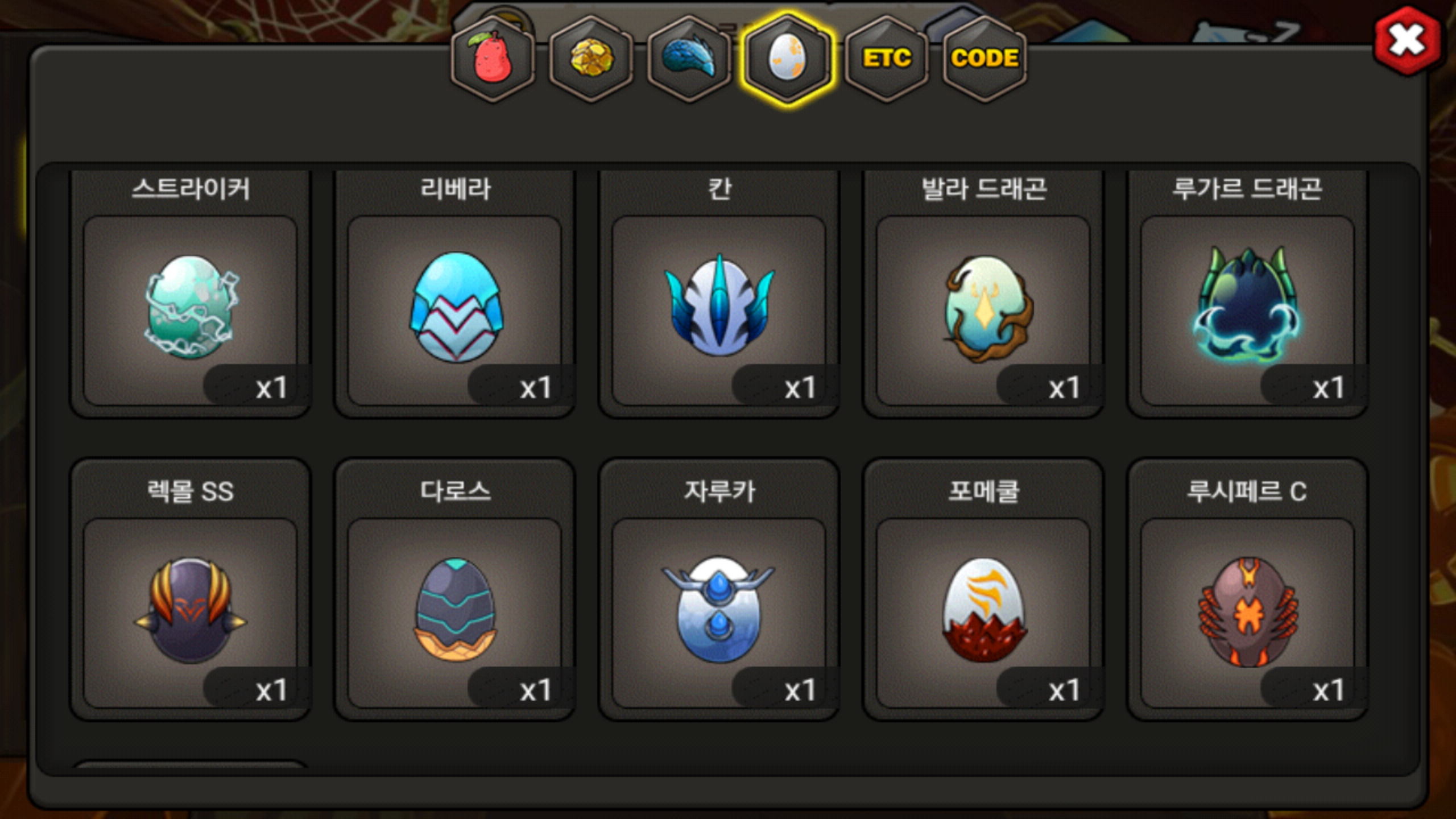 이중에 즈믄이랑 발라크가 추가됬고 다크혼하나랑 블랙혼b가 제외 되었습니다..