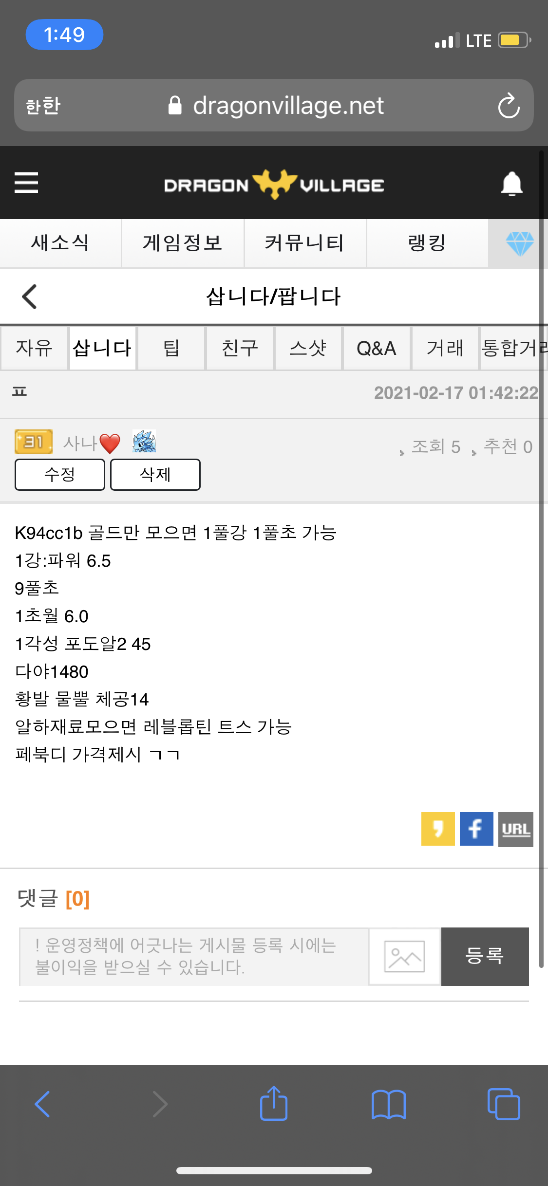 커뮤니티 > 삽니다/팝니다