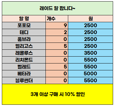 레이드 알 팝니다