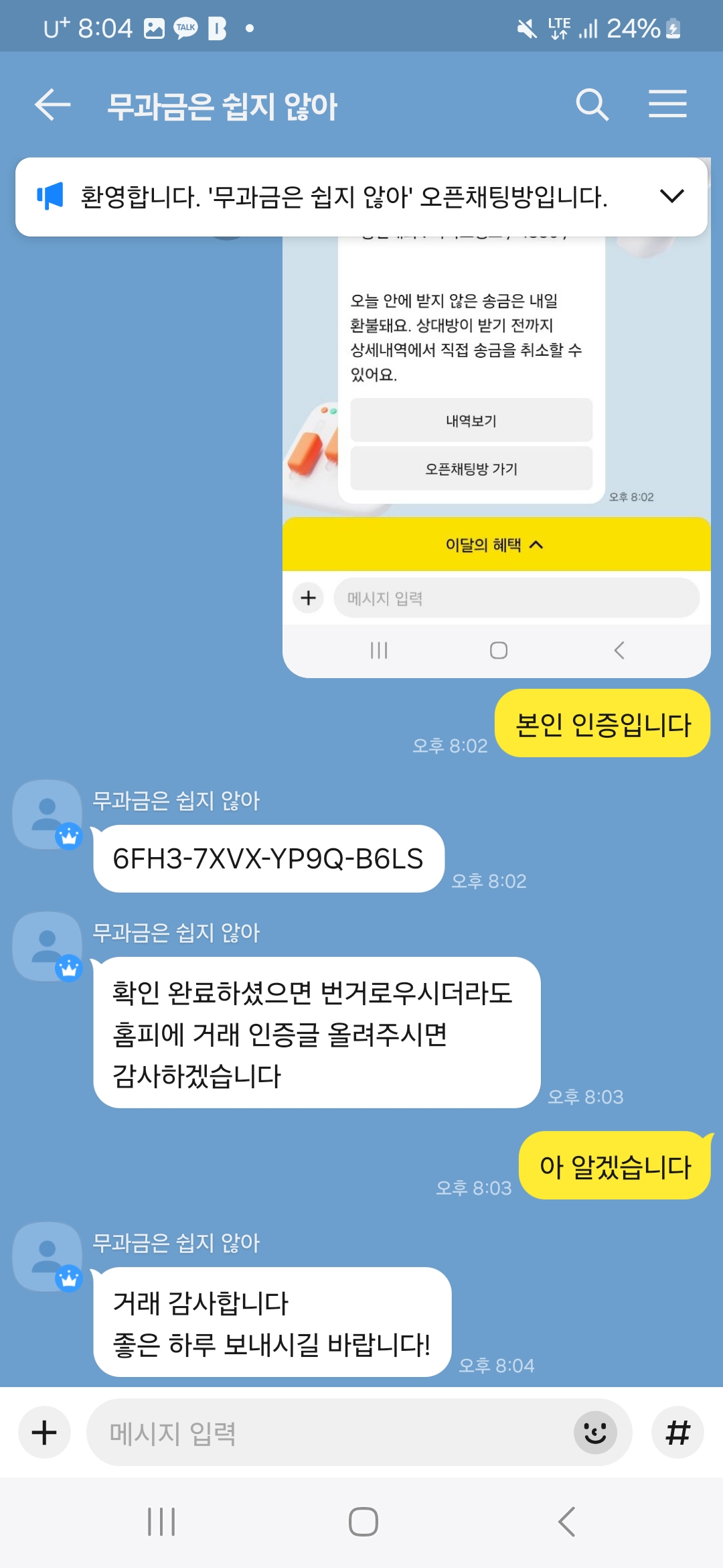 거래 인증글입니다