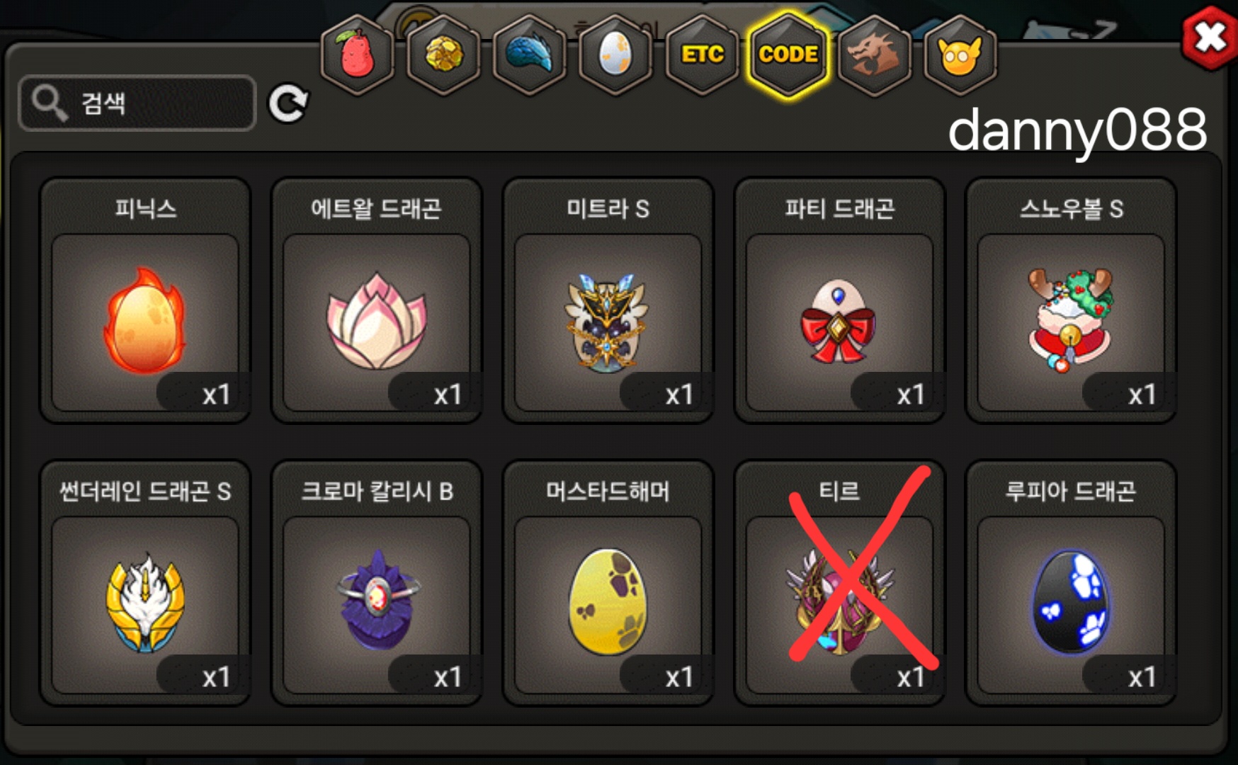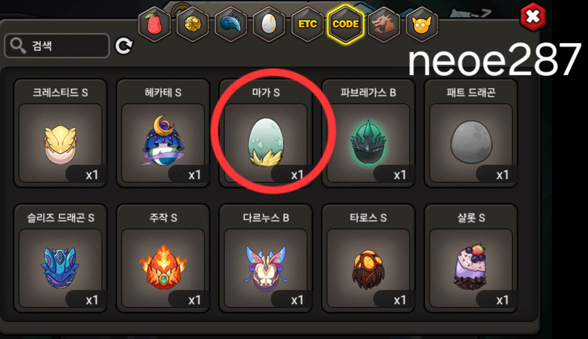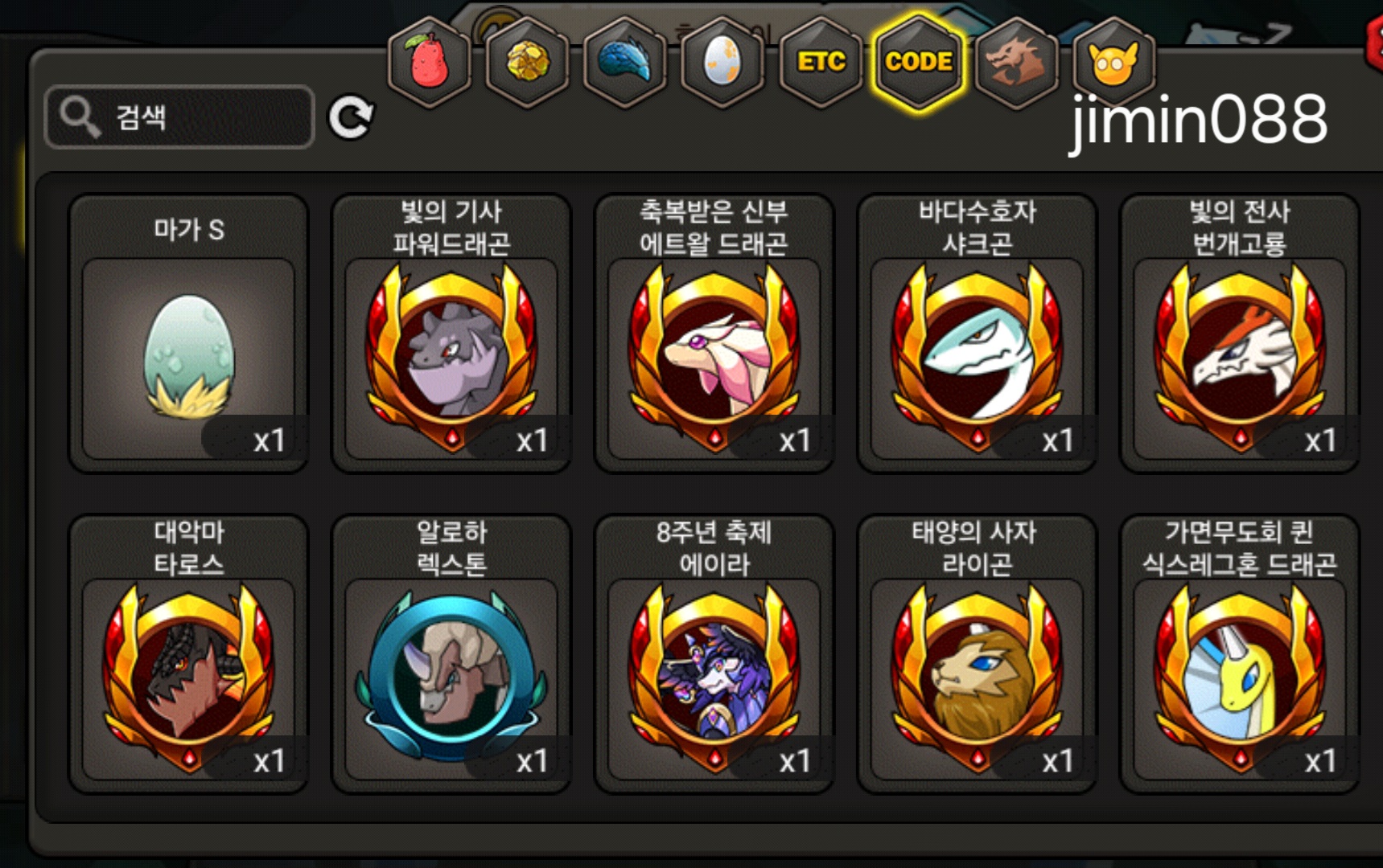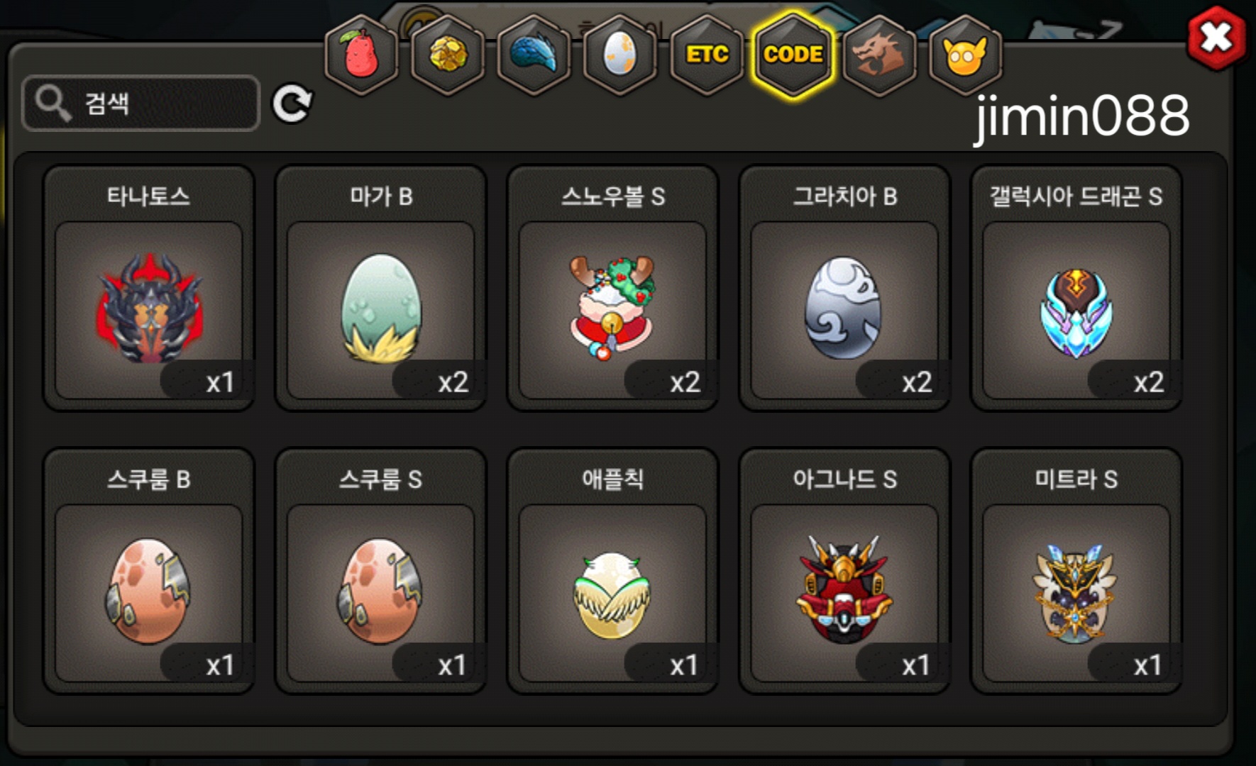 그외 등급용 알은 문의주세요. 코드변환 안한 알들(도감용 등) 많아요.