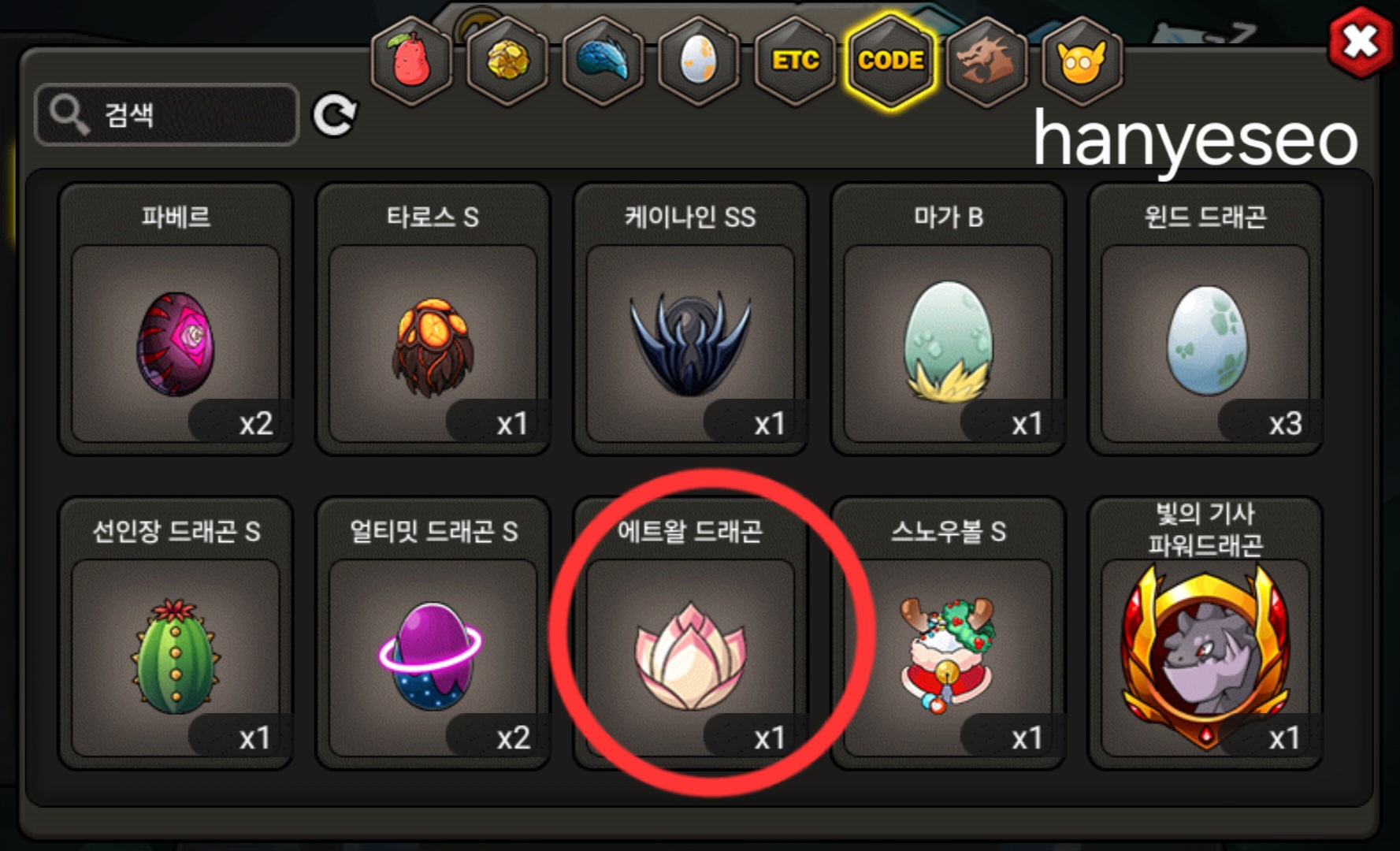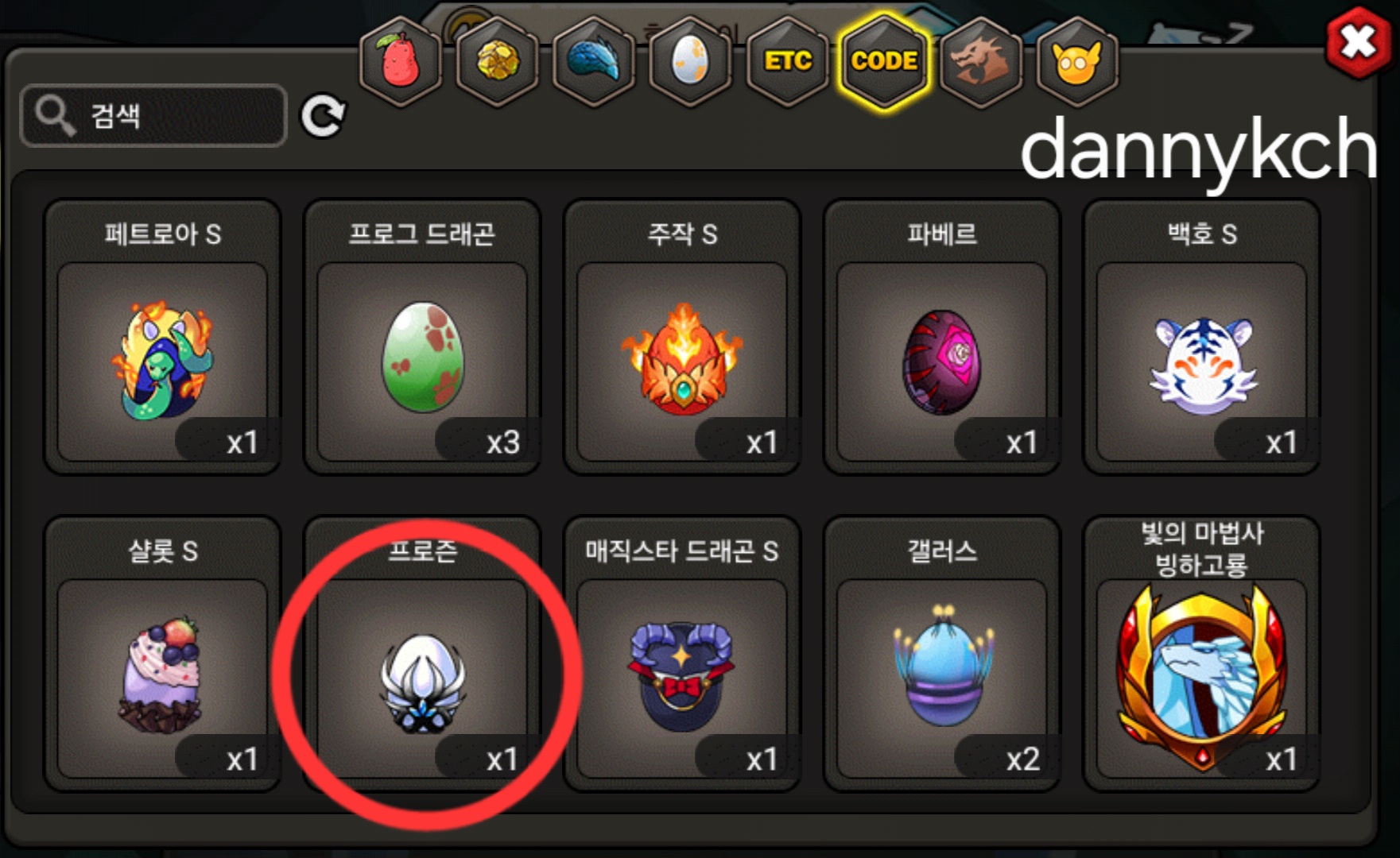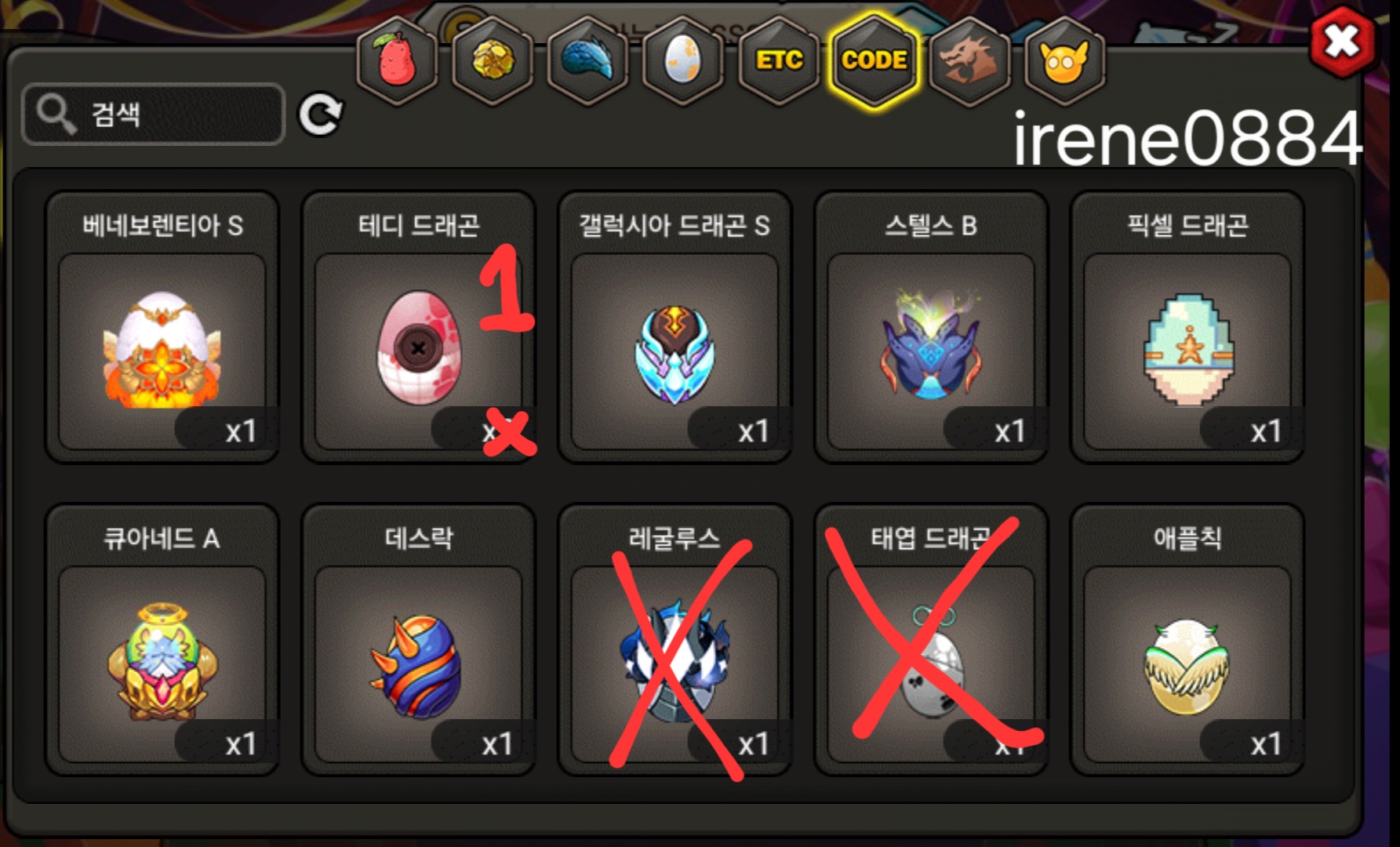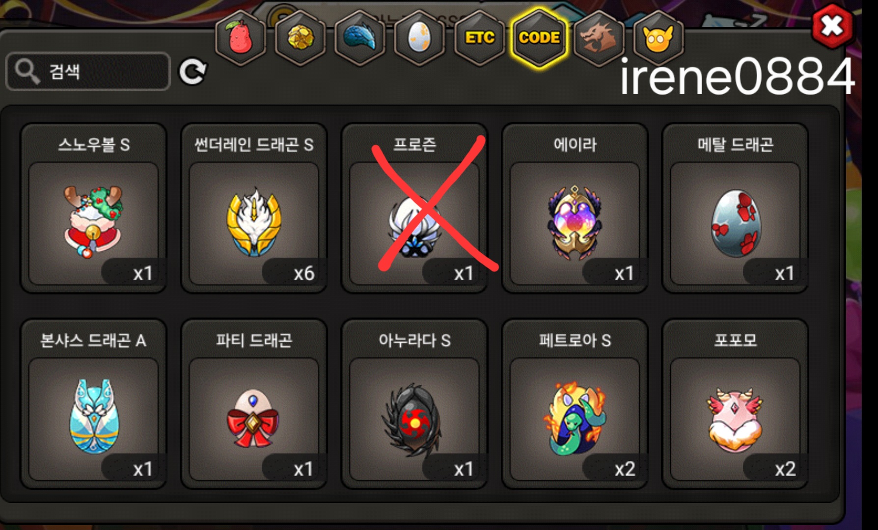 그외 등급용 알은 문의주세요. 코드변환 안한 알들(도감용 등) 많아요.