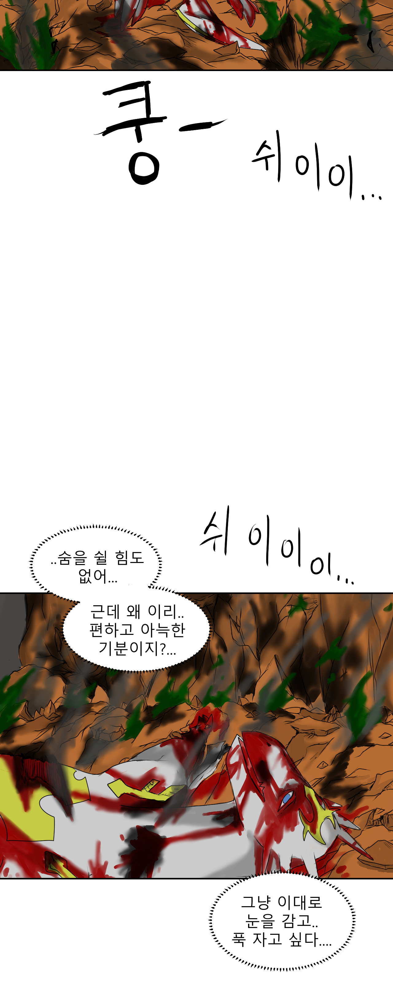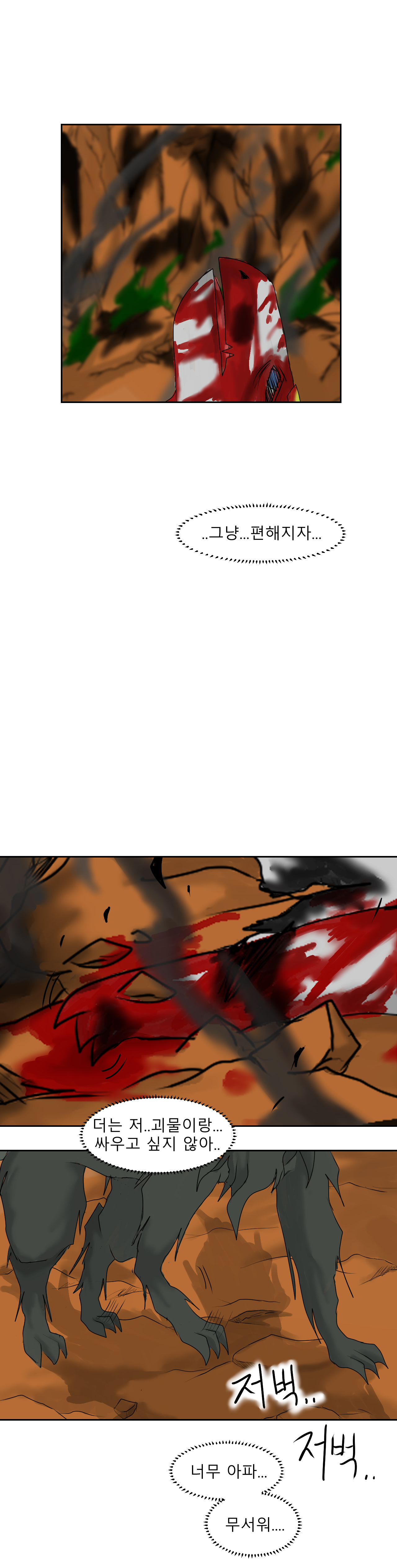 항상 완성된 컷을 주르륵 읽을때서야 웹툰 상에서의 시간이 얼마 진행도 안된 상태란걸 깨닫게 되네요 ㅠ