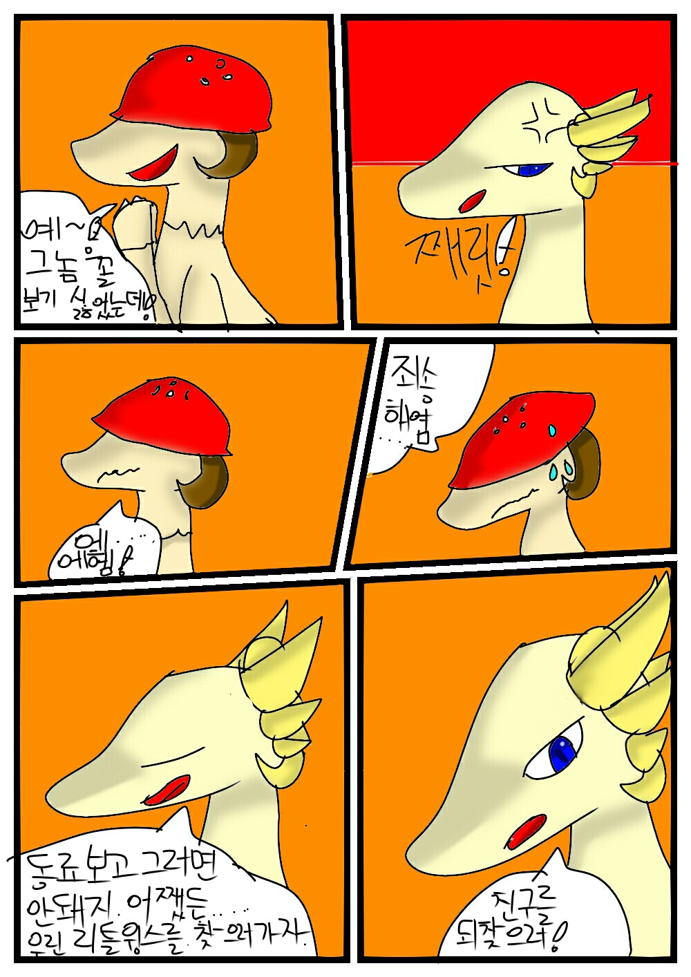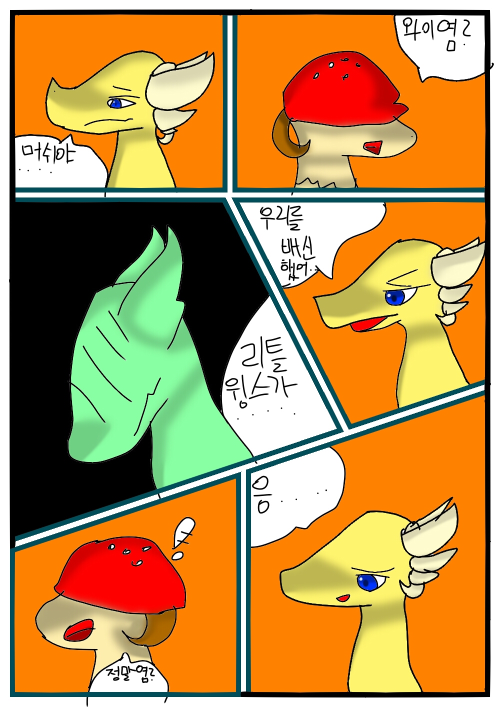 캭캭 리틀윙스와 솔라,머쉬룸이 존못한테 가서 학대당하고 있는 현장입니다!