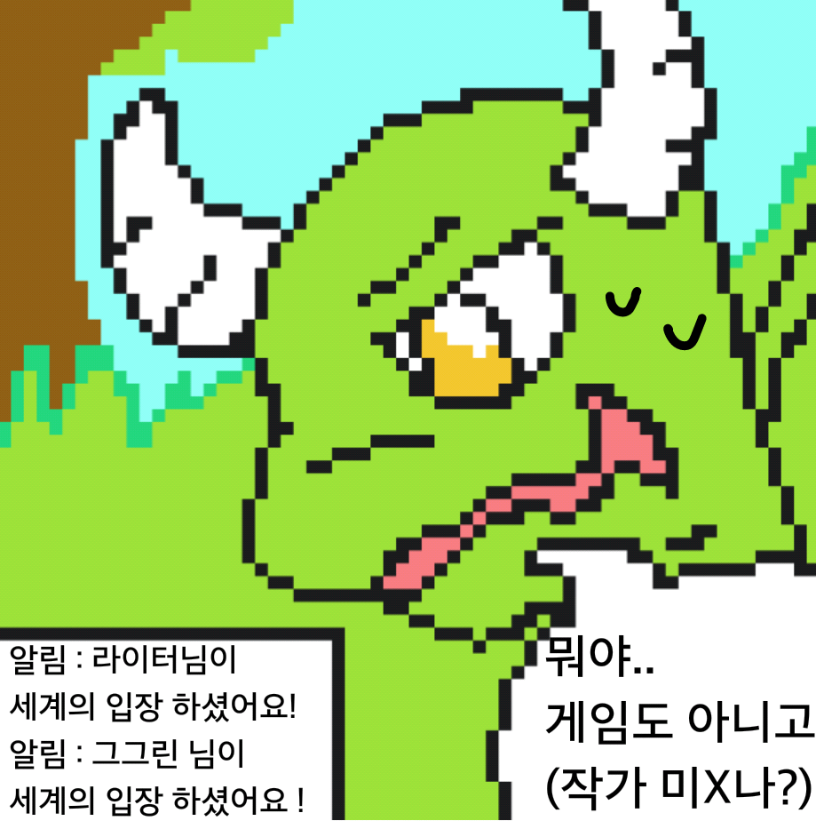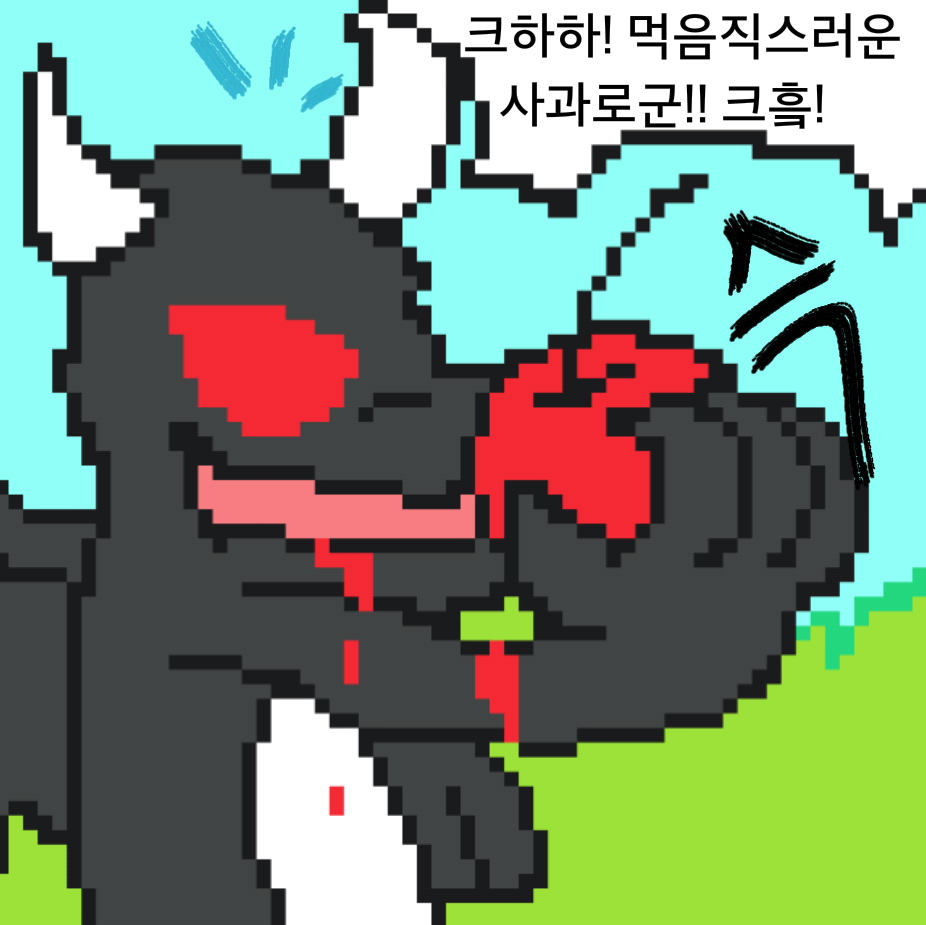 이번 화는 진짜 약 먹은거 같습니다(제 생각)(사과 먹는 순간 튕겨서 데미지 입은거 모름)-[작까↗의 말]- 안녕하세요! 더위를 느끼는 수박입니다..() 오늘은 특별히 분량이 많아영(ㅋㅇㅋ) 근데 요즘ㅋㅋㅋ 저 깜둥이 곤이 주인공 같애욬ㅋㅋ 기사단 안나오고 쟤가 개그 스토리 만들어 내니 쟤가 주인공 같넼ㅋ 참고로 쟤가 ㄹㅇ 주인공 아녜여! 그리고 그리기도감 콘테스트 올렸는데 한번 봐주세여(그림뽐네기) 글구 어제 밤새서 만든 게 있는데 (+발록 이에영 하하하ㅏㅎ하..처음그려봐서 그런지 눈태러 같ㄷr..참고로 손그림 쨌든 여름 잘 보네시고 다음주 에 만나여!