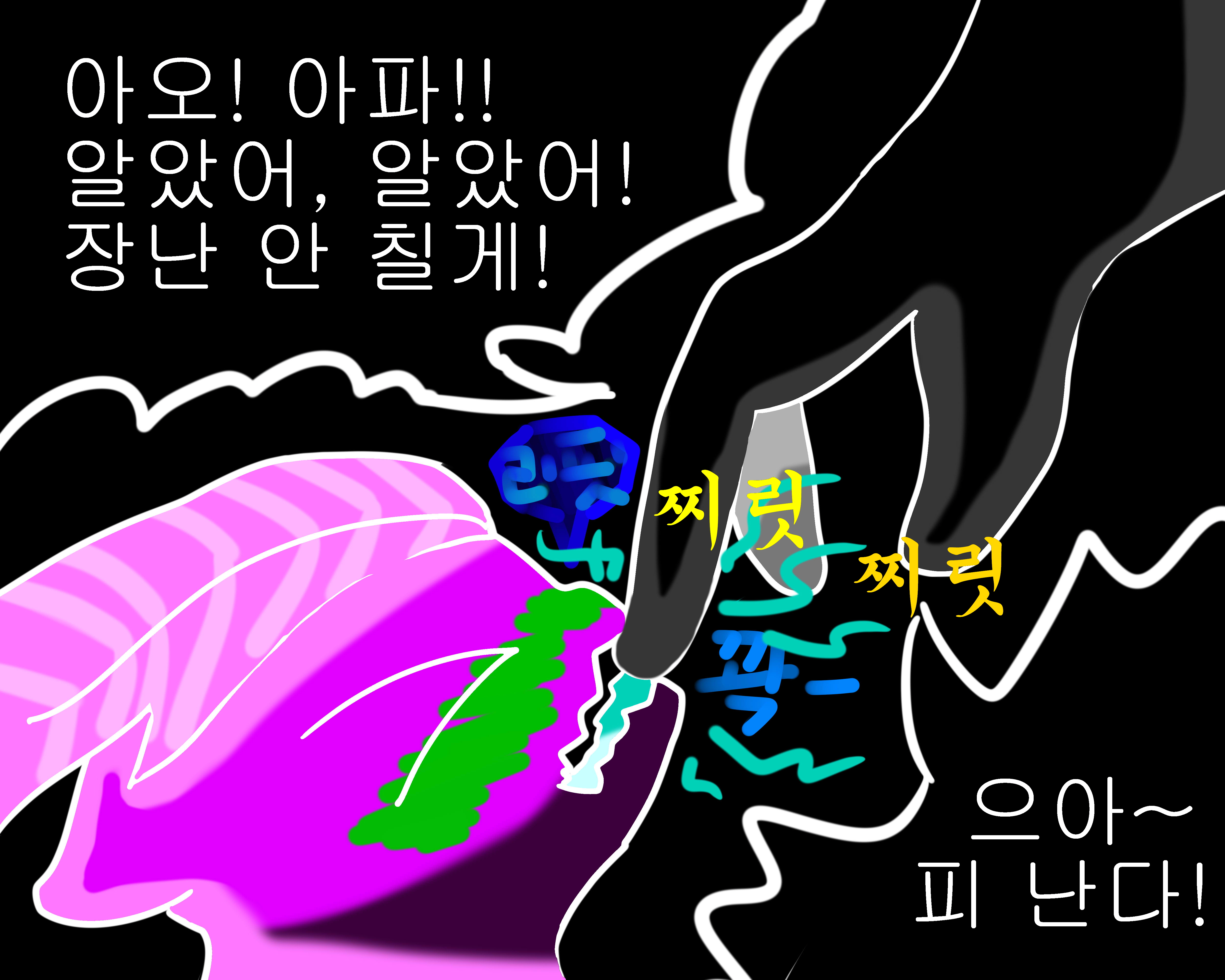 채색도 명암 제대로 안 넣고 진짜 대충 그렸어요~