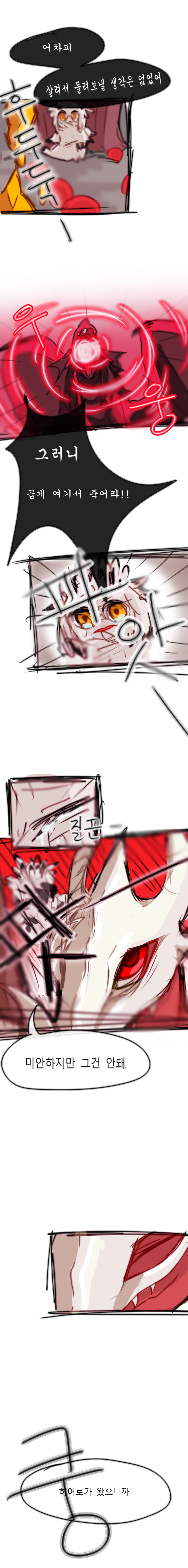 그냥 심심할 때마다 휘갈겨 그리는 거라 보기 불편할 것이며, 전투씬을 그렇게