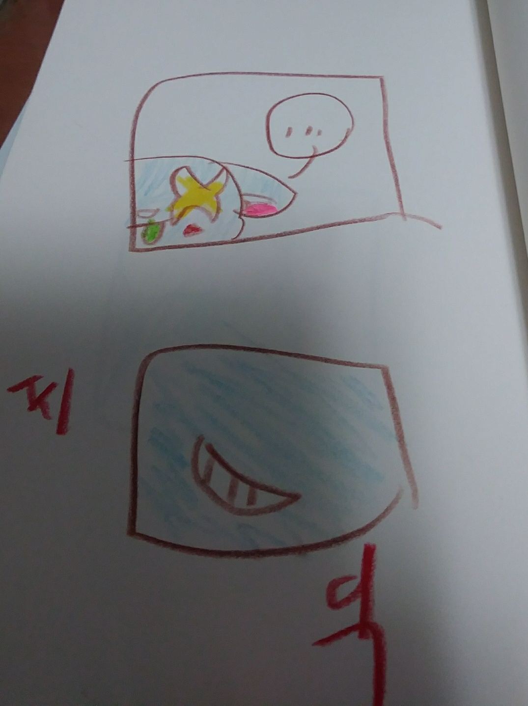 저 사실 만화만들때 스토리 미리 생각안하고 그때그때 만들어요 그렇기에 점점산으로 가던 스토리이 .. (?) 색연필 을 학교에 다 놔두니 집에별로없다