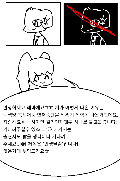 죄송해요ㅠㅠ 인생탈출에서는 더욱 재미있는 웹툰으로 컴백하겠습니다ㅠㅠ
