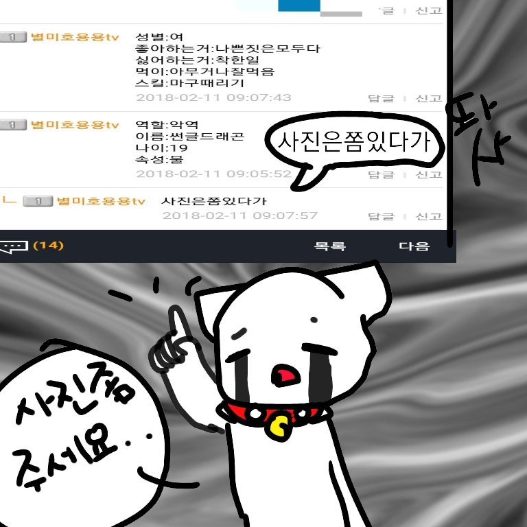 별미호용용tv님 사진 빨리 주세여..(참고 못나오고 한 그림은 아무래도 오류에 의해 2개로 나와여!!아래껏은 무시하세요!)