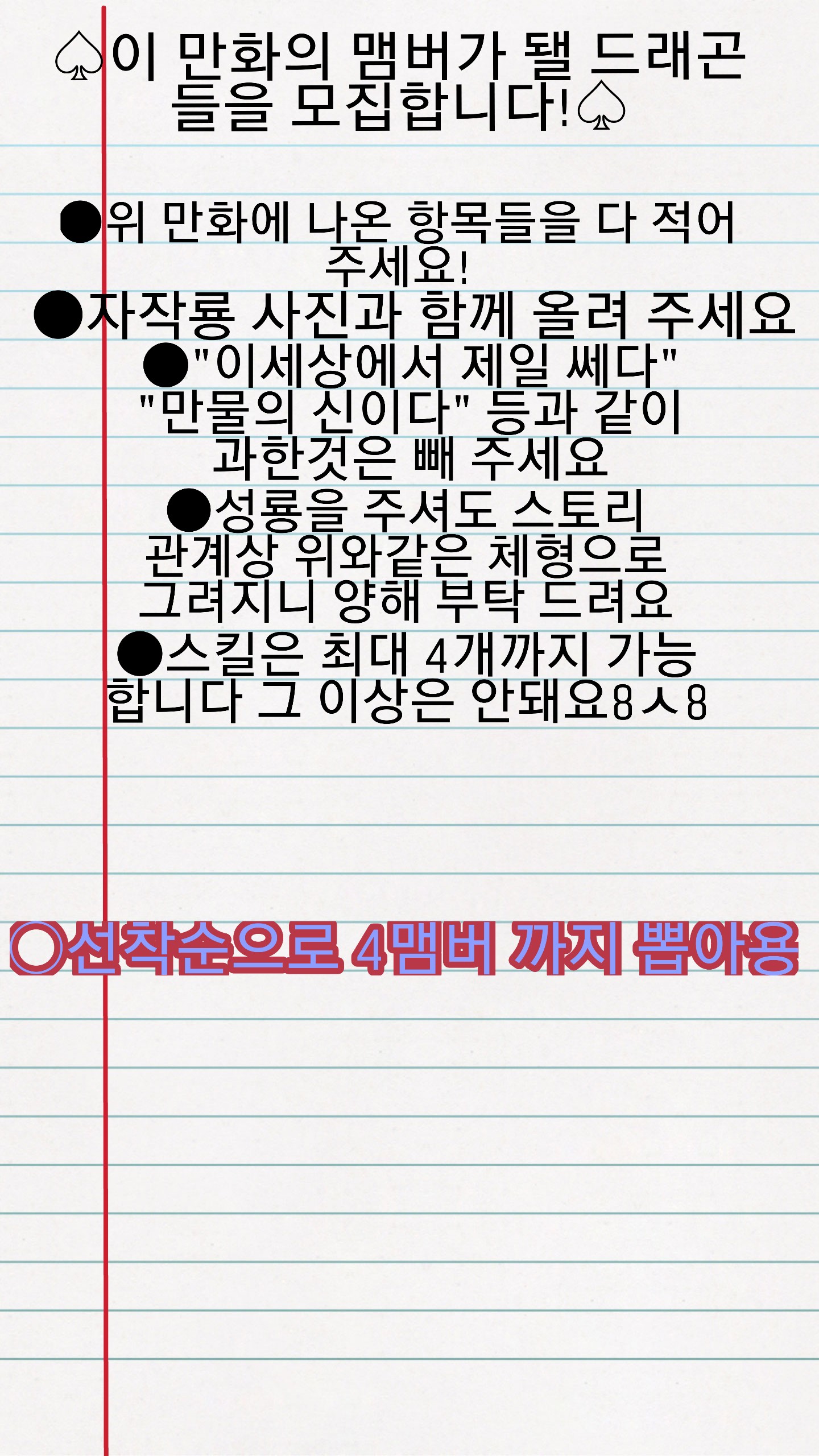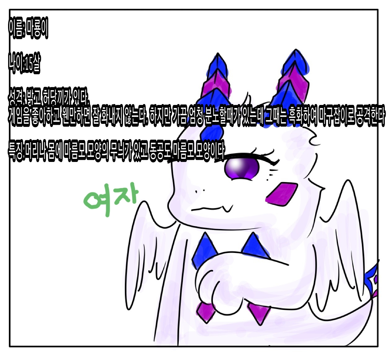 안녕하세용 일상툰 시작전 여러분들의 자작룡을 모으기 위해 제작했답니다 바로 보이는 만화는 제 실력 정도라 생각하시면 돼구