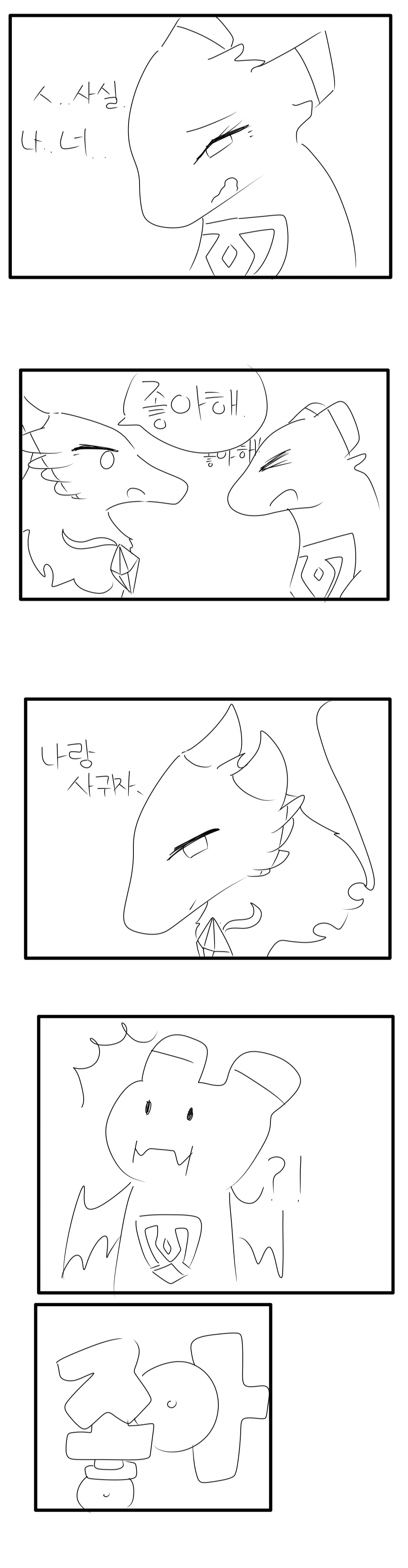 안녕하세요! 트뇽이 입니당 만약 드래곤이 연애를 한다면 어떤느낌일까 상상하며 그려보았어욘 지금은 시간이 없어서 채색을 못했구 1화부터 채색을 할 예정 입니단 그럼 앞으로 배고픈 연애 잘 봐 주시고 이만 줄이겠습니다>♡<