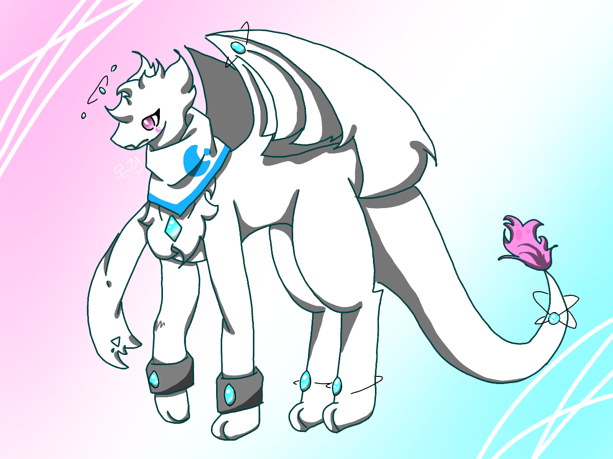 꼬리에는 링 4개가 걸려 있으며, 꼬리 끝에는 물방울 모양 보석이 3개가 있다.